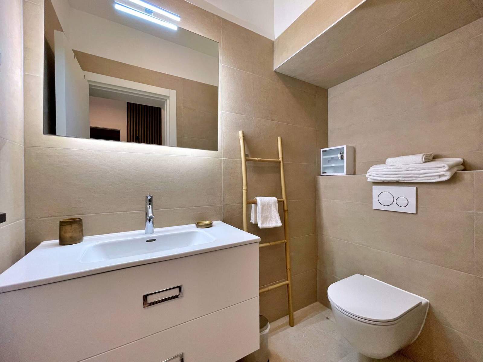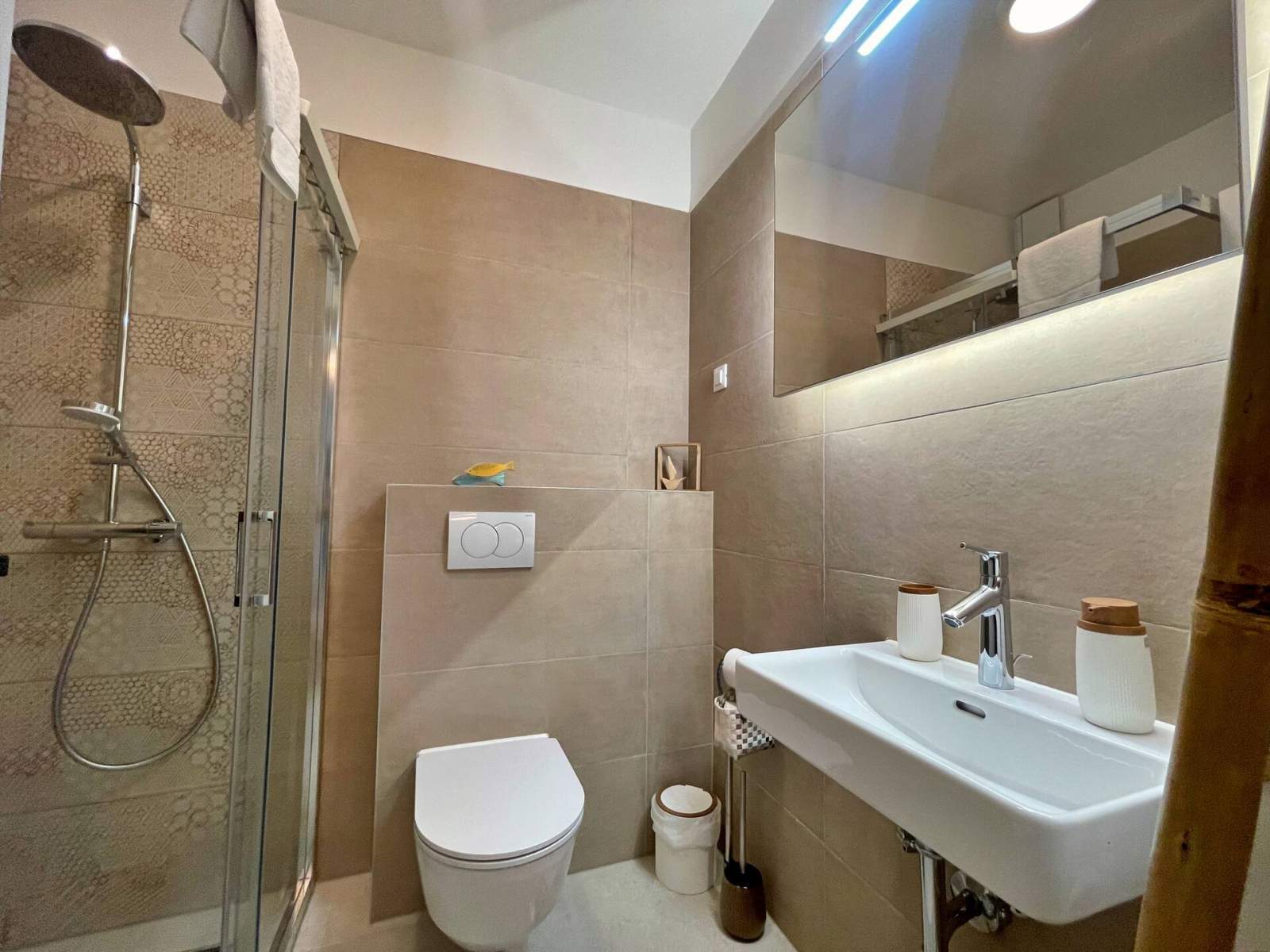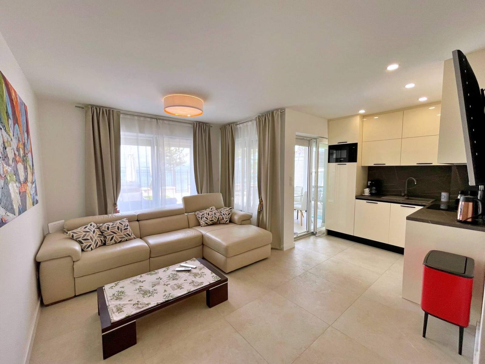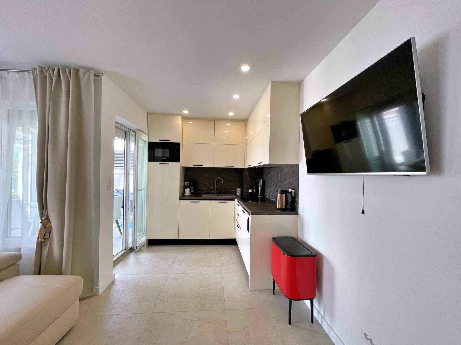 Apartman je bio besprijekorno čist, moderan i samo nekoliko koraka od mora. Uživali smo u jacuzziju i kod bazena. Lokacija ne može biti bolja — sigurno se vraćamo!