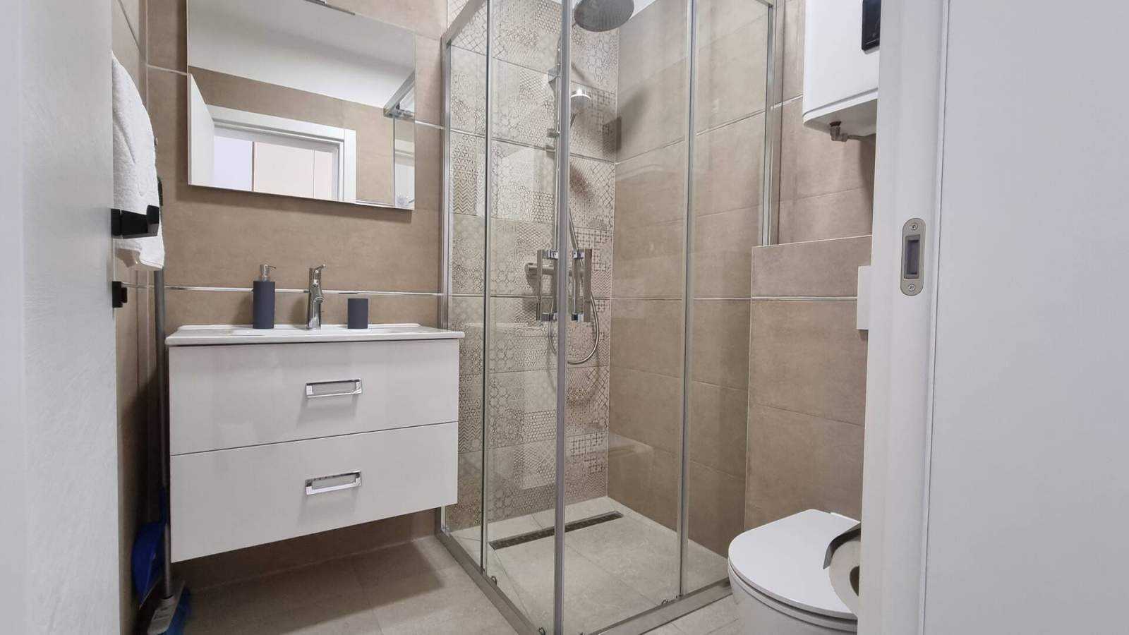 Dieses luxuriöse und moderne Apartment befindet sich in einem ruhigen Apartmentkomplex nur 30 Meter vom Meer entfernt, umgeben von Natur, vielen Buchten, Kieselstränden und Wanderwegen. Es bietet einen gemeinschaftlichen Salzwasserpool (36 m2), der von Mai bis Oktober geöffnet ist und dessen Temperaturen normalerweise 20-26 °C erreichen. Das Apartment befindet sich im Erdgeschoss und verfügt über ein Schlafzimmer mit einem Doppelbett, eine moderne Küche mit Induktionskochfeld, Kühl- und Gefrierschrank, Wasserkocher, Kaffeemaschine, Toaster, Mikrowelle und Geschirrspüler. Das Badezimmer hat eine Dusche und eine Toilette. Der Essbereich und das Wohnzimmer bieten einen gemütlichen Raum mit einem Sofa und einem Smart-TV, während kostenloses WLAN im gesamten Gebäude verfügbar ist.