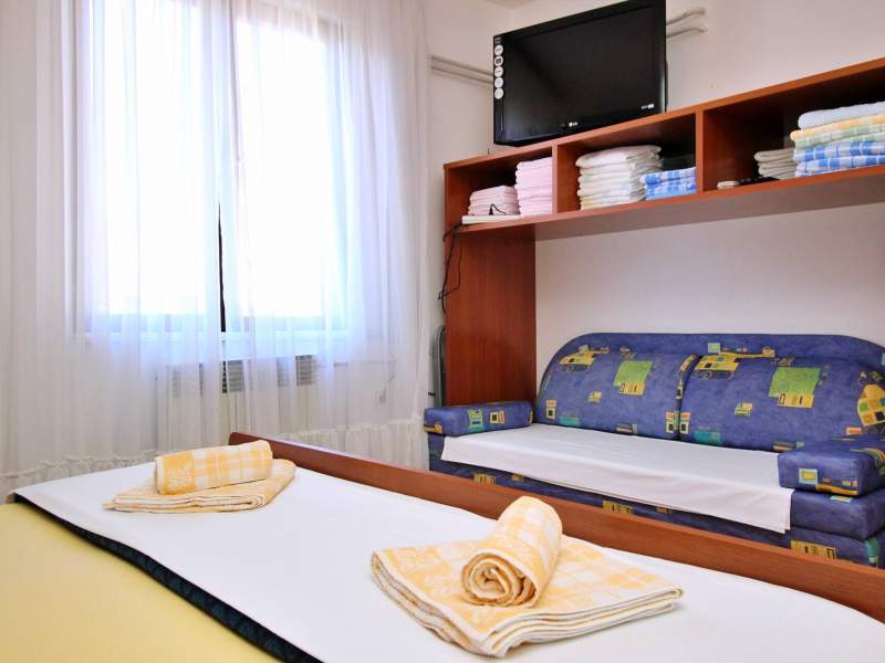 Enjoy a relaxing summer holiday in this cozy apartment in the tranquil town of Šilo on the island of Krk. Known for its sandy and pebble beaches, natural coves, and scenic hiking trails, Šilo is perfect for nature lovers. The apartment is located on the 1st floor and is ideal for 2 guests, featuring a bedroom with a double bed, sofa, and satellite TV, plus a kitchen and a dining area equipped with a 4-burner electric stove, oven, refrigerator, freezer, coffee machine, toaster, and dishwasher. The bathroom includes a toilet, bathtub, and hairdryer, with an iron also provided. The furnished 4 m2 balcony is located by the entrance. The beach and town center are just 200 meters away, and you'll enjoy free Wi-Fi, air conditioning, and private parking. A barbecue is available, and pets are welcome too, for an extra charge. The owner lives on-site and is ready to assist, ensuring a comfortable and enjoyable stay.