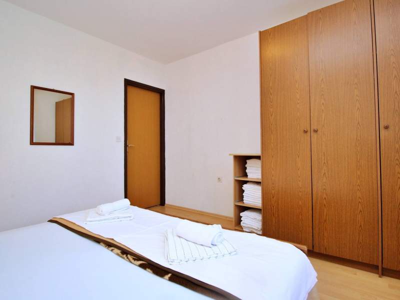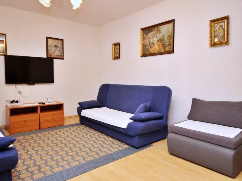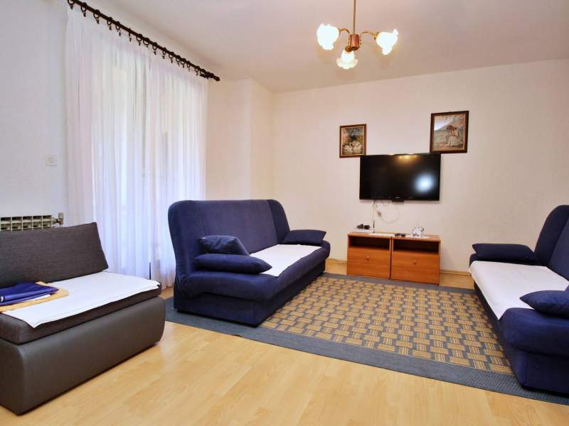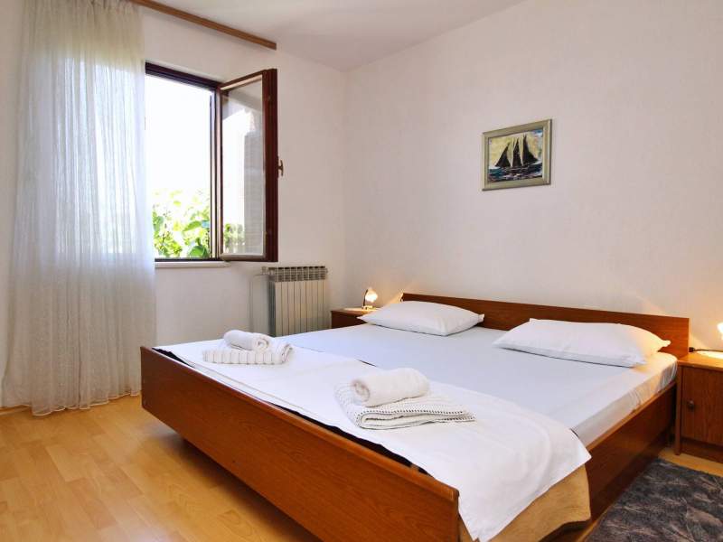 Enjoy your summer holiday in this cozy apartment in the charming fishing village of Šilo on the island of Krk. Known for sandy and pebble beaches, natural coves, and scenic hiking trails, Šilo offers a perfect getaway. This first-floor apartment accommodates 4-5 people with two bedrooms (each with a double bed) and a sofa bed in the living room. The well-equipped kitchen includes a 4-burner stove (electric/gas), oven, fridge-freezer, coffee machine, microwave, toaster, and dishwasher. The living room has a TV with satellite and cable channels.