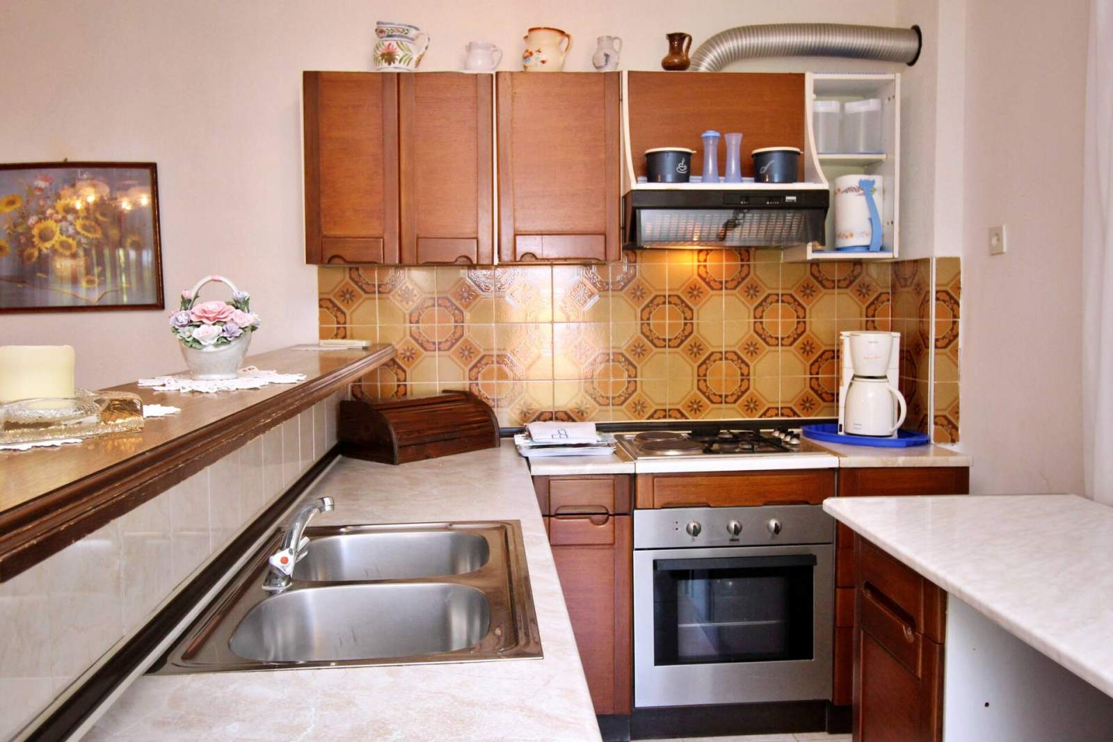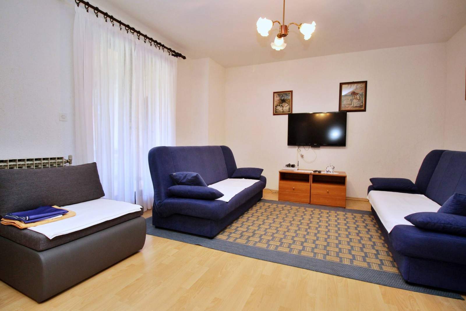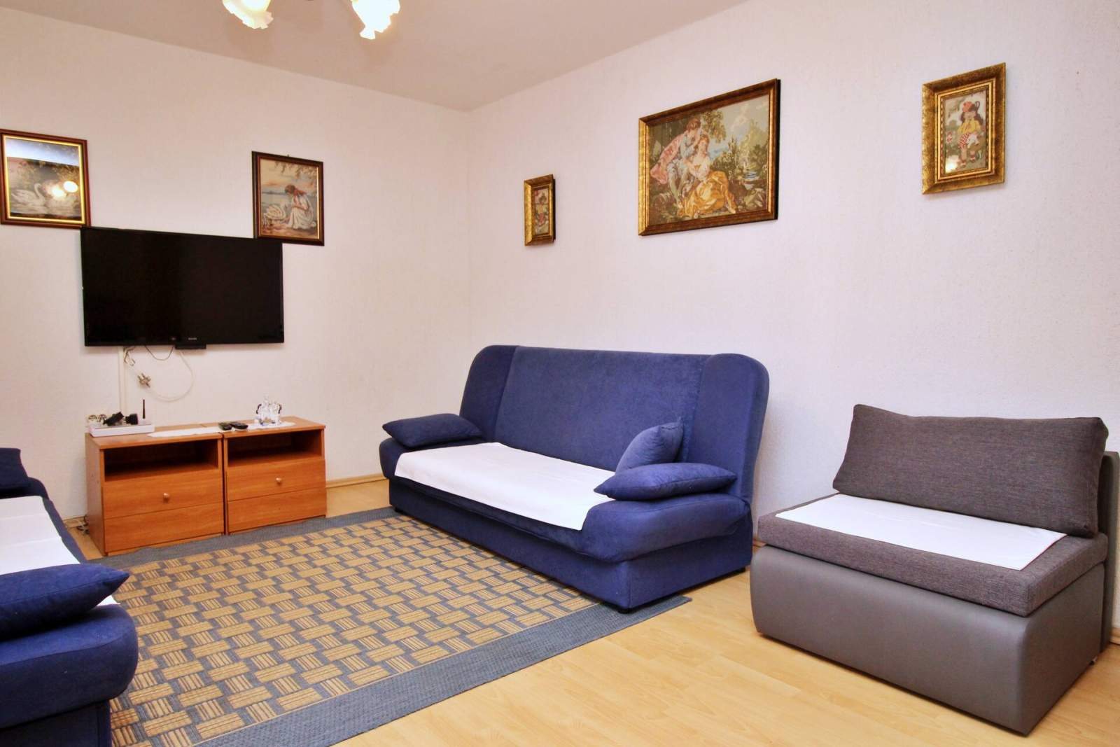 Fully equipped 1+1. Furniture no luxury, but all it takes is a good kitchen dishwashers, a toaster… a lot of desusions, a drugstore. Peace and quiet.