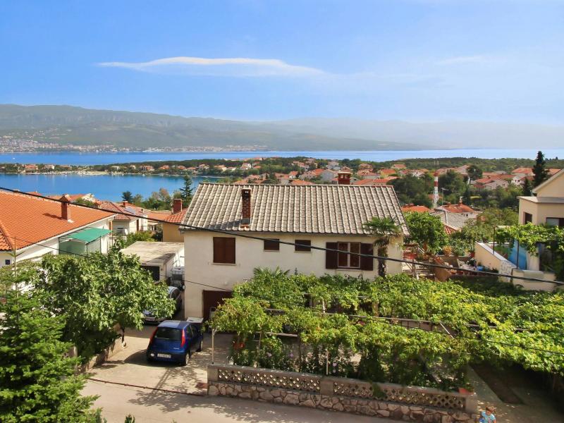 Enjoy your holiday in this spacious apartment for up to 4 guests on the island of Krk, in the charming town of Šilo, known for its beautiful sandy and pebble beaches, natural bays, and scenic hiking trails. The apartment features two bedrooms, each with a queen-size bed, a living room with a kitchen and dining area, and a bathroom equipped with a toilet, shower, and washing machine. The kitchen includes an electric stove, oven, fridge and freezer, coffee maker, kettle, microwave, and toaster. Additionally, the apartment boasts a spacious 20 m2 terrace overlooking the sea and town, perfect for relaxing. Located about 500 meters from the town center and 600 meters from the nearest beach, this accommodation offers peace and comfort during summer days. Amenities include air conditioning, Wi-Fi, and a free parking space. The apartment is comfortably furnished, providing everything you need for a relaxing holiday, and pets are welcome for an additional charge.