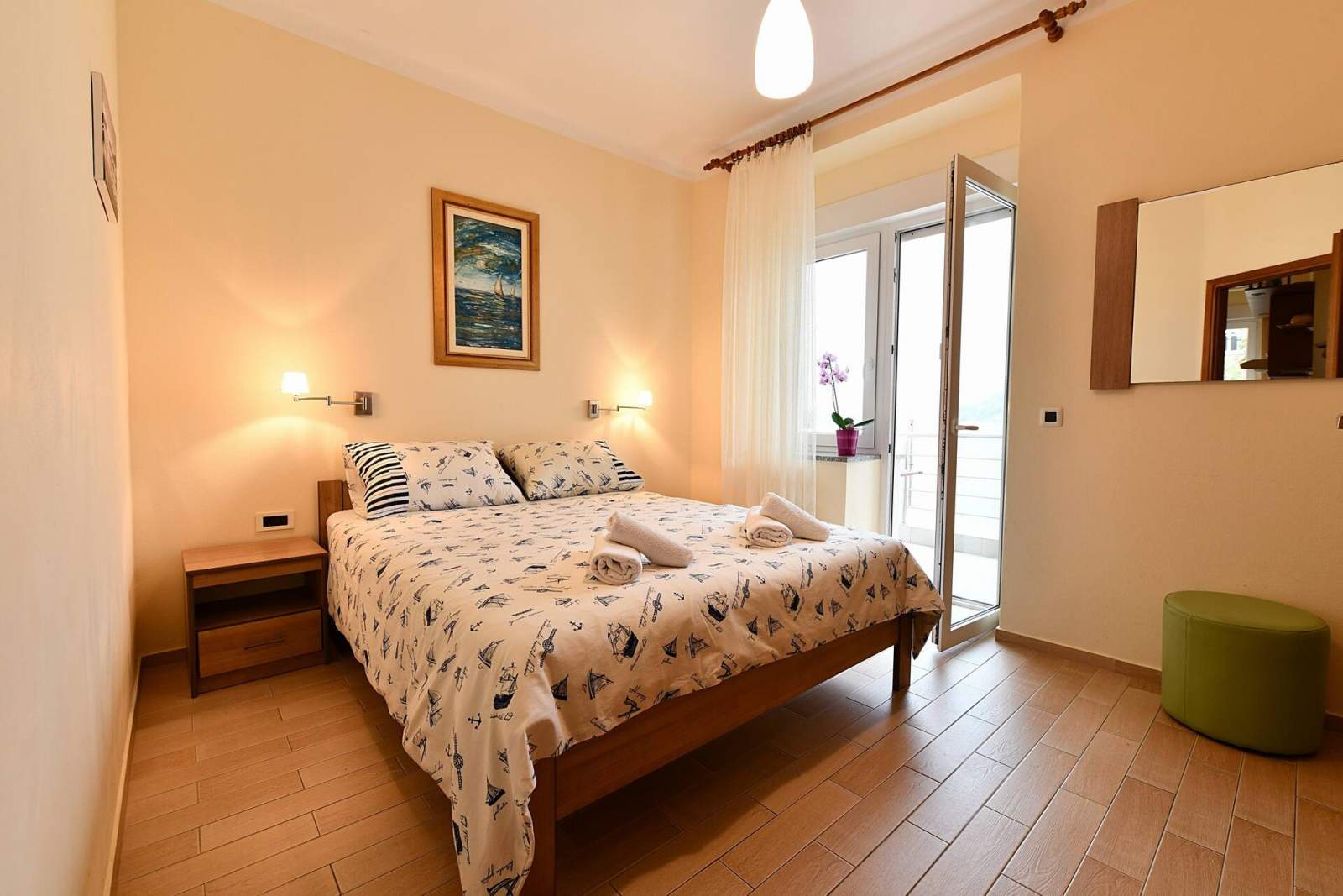 The location was simply perfect. On the beautiful balcony, you feel as if you are sitting above the sea! The view from the balcony of the stunning bay and harbor was also first-class. We only stayed five nights, but our towels were even changed after three days, even though it was an apartment. The seaside promenade and the old town start directly from the House. It was also especially nice that the host helped us bring our luggage into the apartment. Our stay was an absolute pleasure!