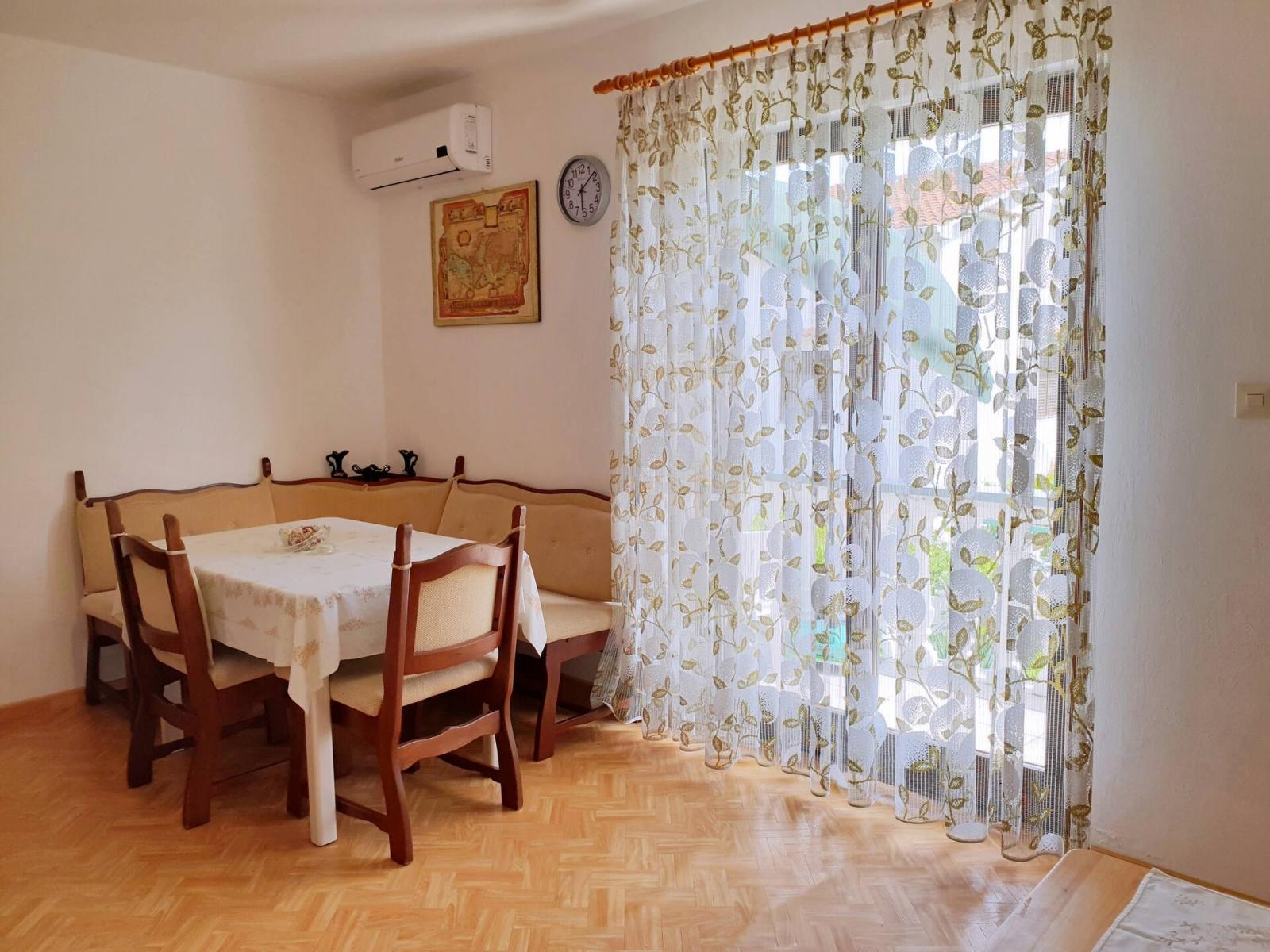Escape to this charming two-bedroom apartment, just 480 meters from the sparkling sea! One bedroom has a queen-size bed, the other two twin beds. Step out onto your private 10 m2 balcony, where you can enjoy garden views under the parasol. The kitchen features a fridge with a freezer, an electric stove (4 burners), coffee maker, kettle, and microwave. The living room has a sofa, a satellite/cable TV, air conditioning, and a dining area. The bathroom includes a shower, toilet, and hairdryer, with towels provided for your convenience. There is a private free parking space in the yard, and the entire unti has free Wi-Fi. Enjoy the shared barbecue area on the ground floor, and with the town center and sandy beach only 550 meters away, this delightful apartment is perfect for your next getaway!