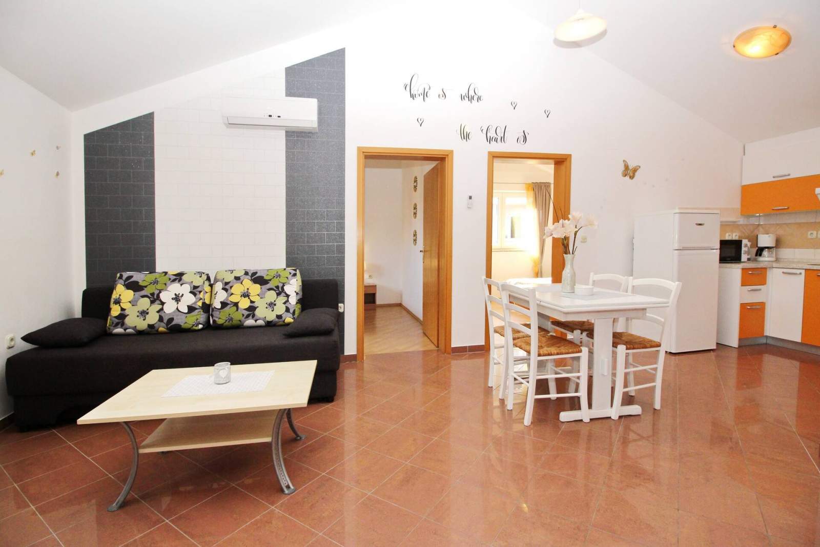 The apartment is equipped with air conditioning, SAT TV and free Wi-Fi.