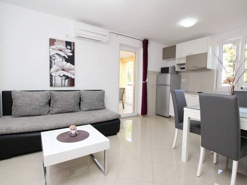This modern apartment is located in a house with shared pool, only 200 m from the main beach of Baska and 100 m from the city center.