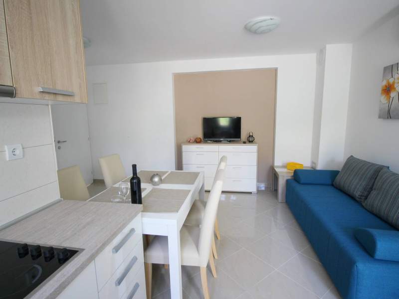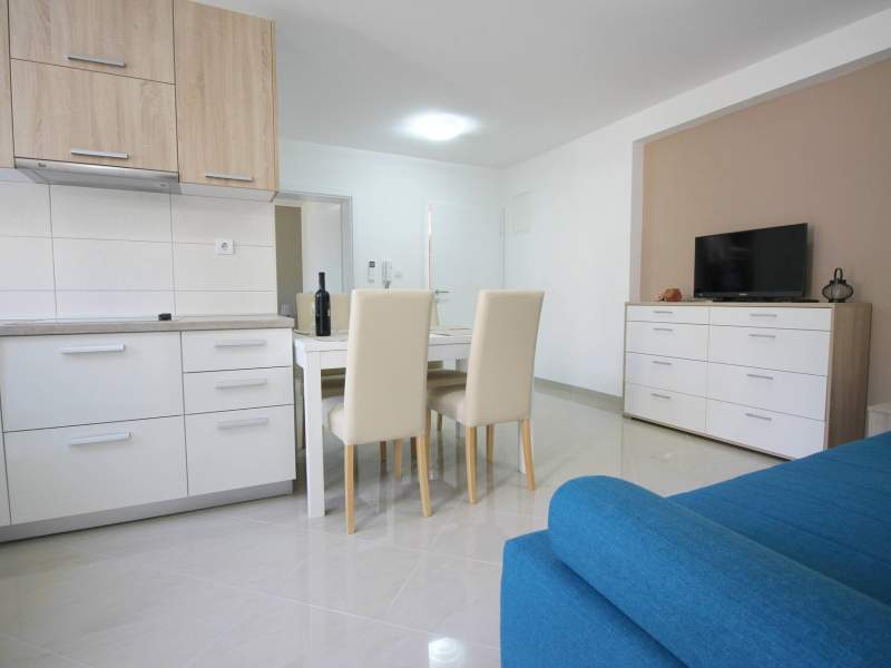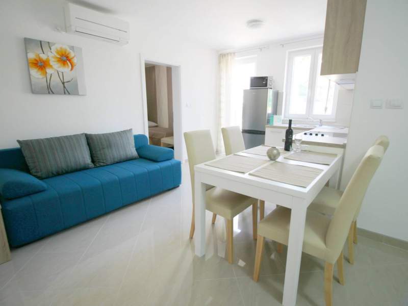 This modern apartment is located in a house with shared pool, only 200 m from the main beach of Baska and 100 m from the city center.