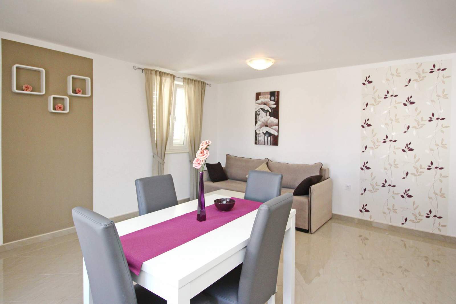 This modern, spacious apartment is located in a house with shared pool, about 300 m from the main beach of Baska and 200 m from the city center.