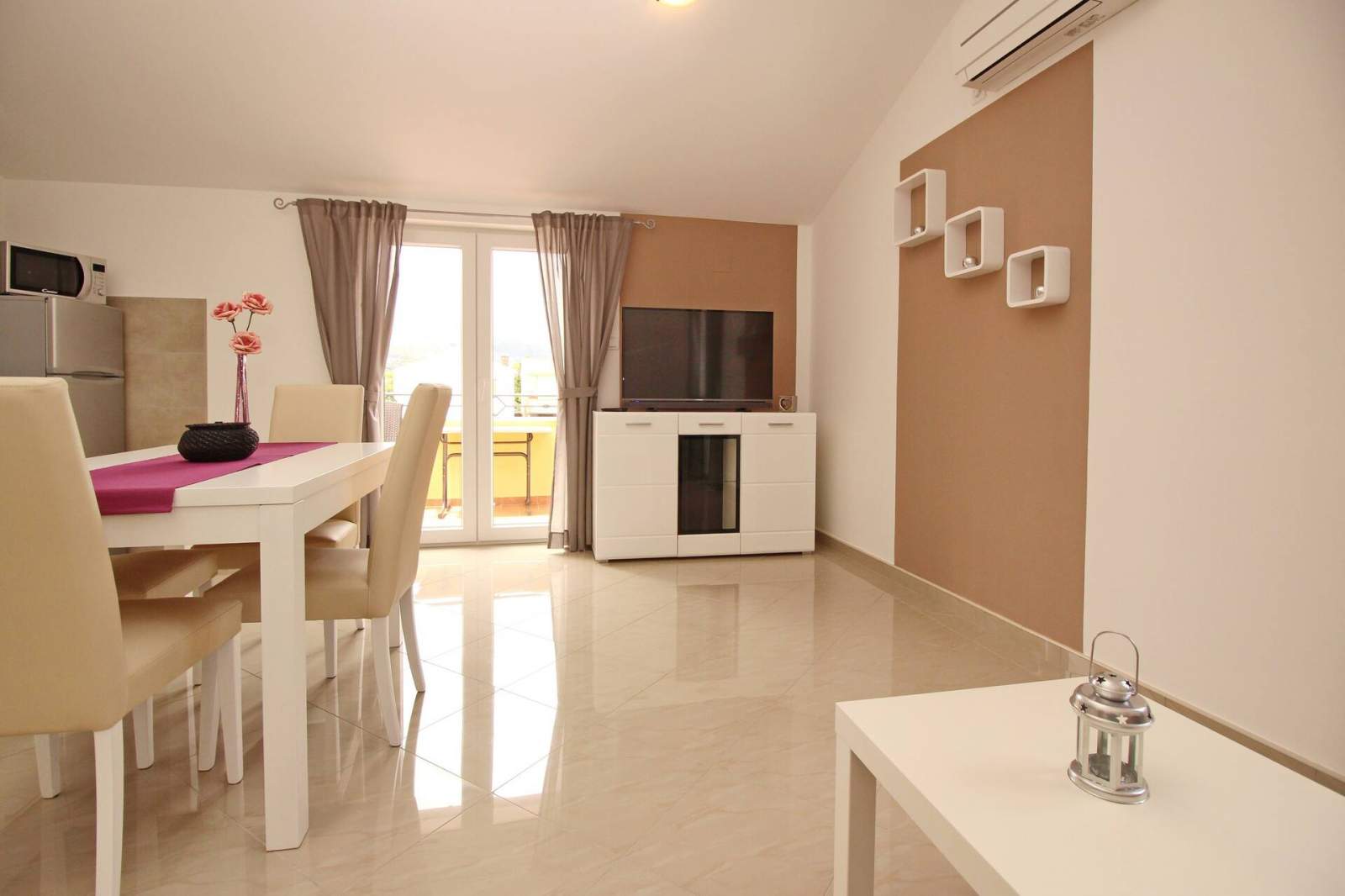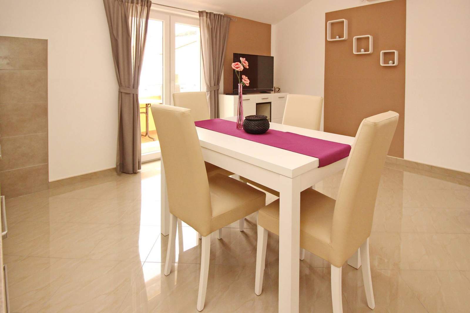 This modern, spacious apartment is located in a house with shared pool, about 300 m from the main beach of Baska and 200 m from the city center.