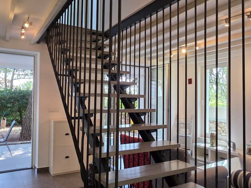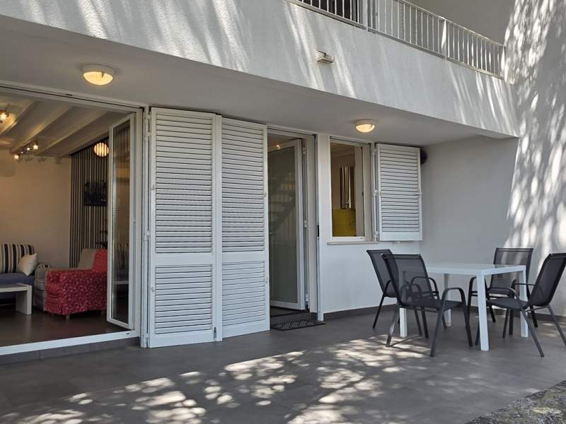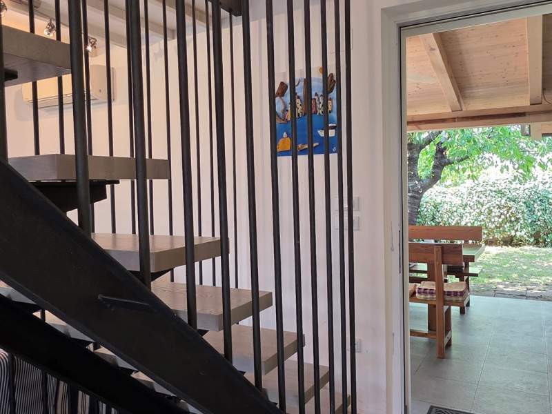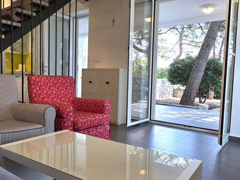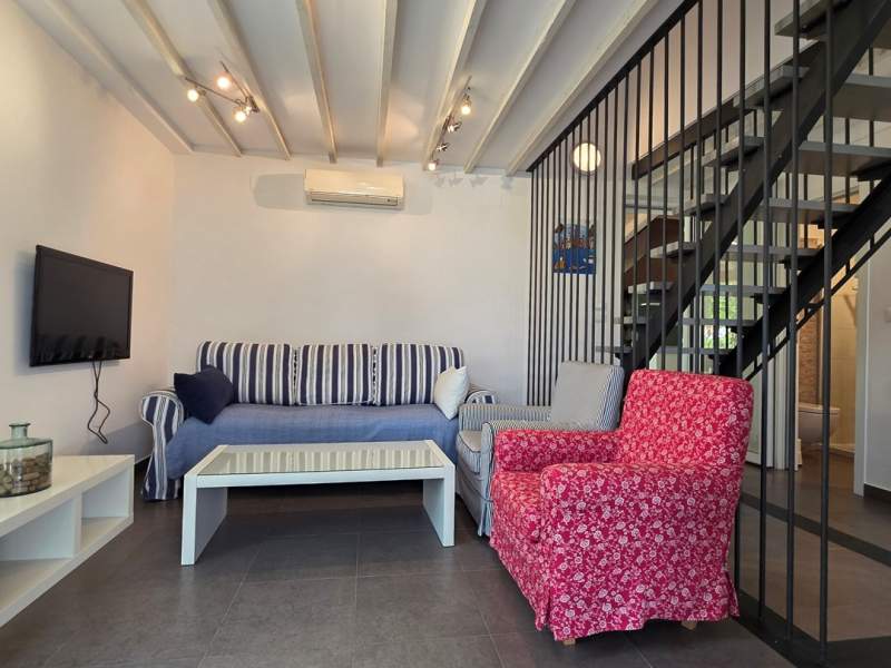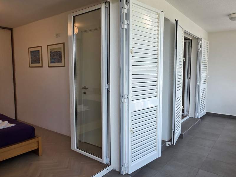 Very good location, two terraces, outdoor shower in addition to the bathroom, air conditioning throughout, enough space even for 5 people. Everything necessary is available in the apartment, the agency is always approachable and very friendly, and bed linen and towels are changed after one week. Wooden staircase to the upper floor with narrow steps.