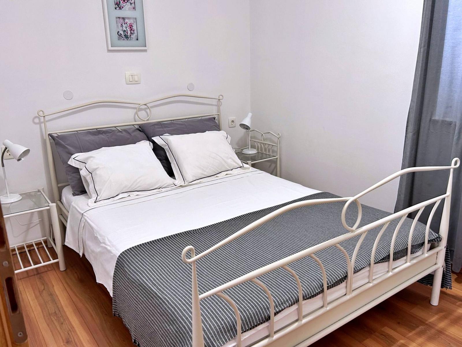Located on the first floor, this cozy apartment features a 4 m2 private balcony with sea view. The air-conditioned kitchen and living area include a ceramic stove, fridge with freezer compartment, Nespresso coffee machine, kettle, microwave, toaster, dining table, pull-out couch for two, cable/satellite TV, and Wi-Fi, with direct access to the balcony. The bedroom offers a queen bed, and the bathroom includes a shower, toilet, and hairdryer. Guests can enjoy a shared BBQ and terrace in the yard, with free private parking in front of the building. Pets are welcome for an additional fee, and a baby cot is available upon request.