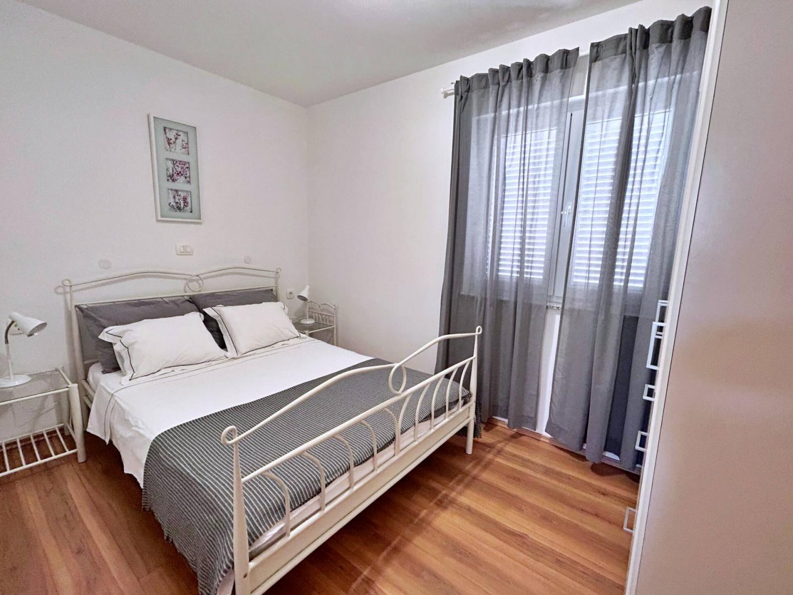 Located on the second floor, this cozy apartment features a 4 m2 private balcony with sea view. The air-conditioned kitchen and living area include a ceramic stove, fridge with freezer compartment, Nespresso coffee machine, kettle, microwave, toaster, dining table, pull-out couch for two, cable/satellite TV, and Wi-Fi, with direct access to the balcony. The bedroom offers a queen bed, and the bathroom includes a shower, toilet, and hairdryer. Guests can enjoy a shared BBQ and terrace in the yard, with free private parking in front of the building. Pets are welcome for an additional fee, and a baby cot is available upon request.