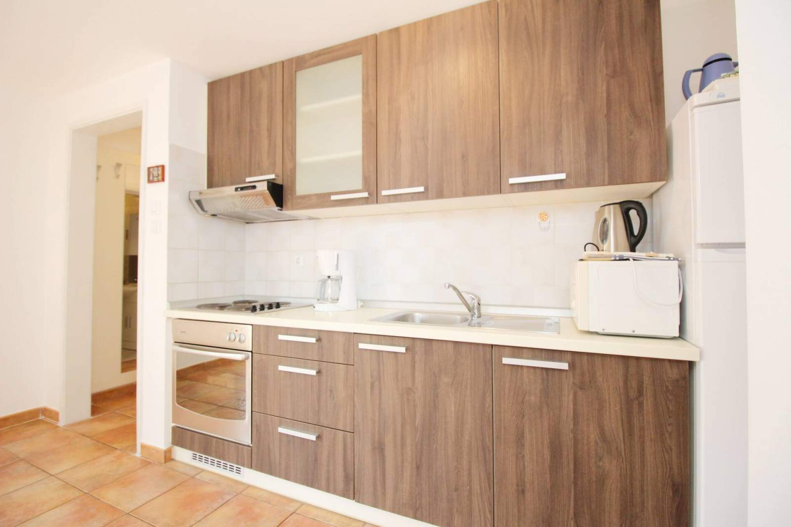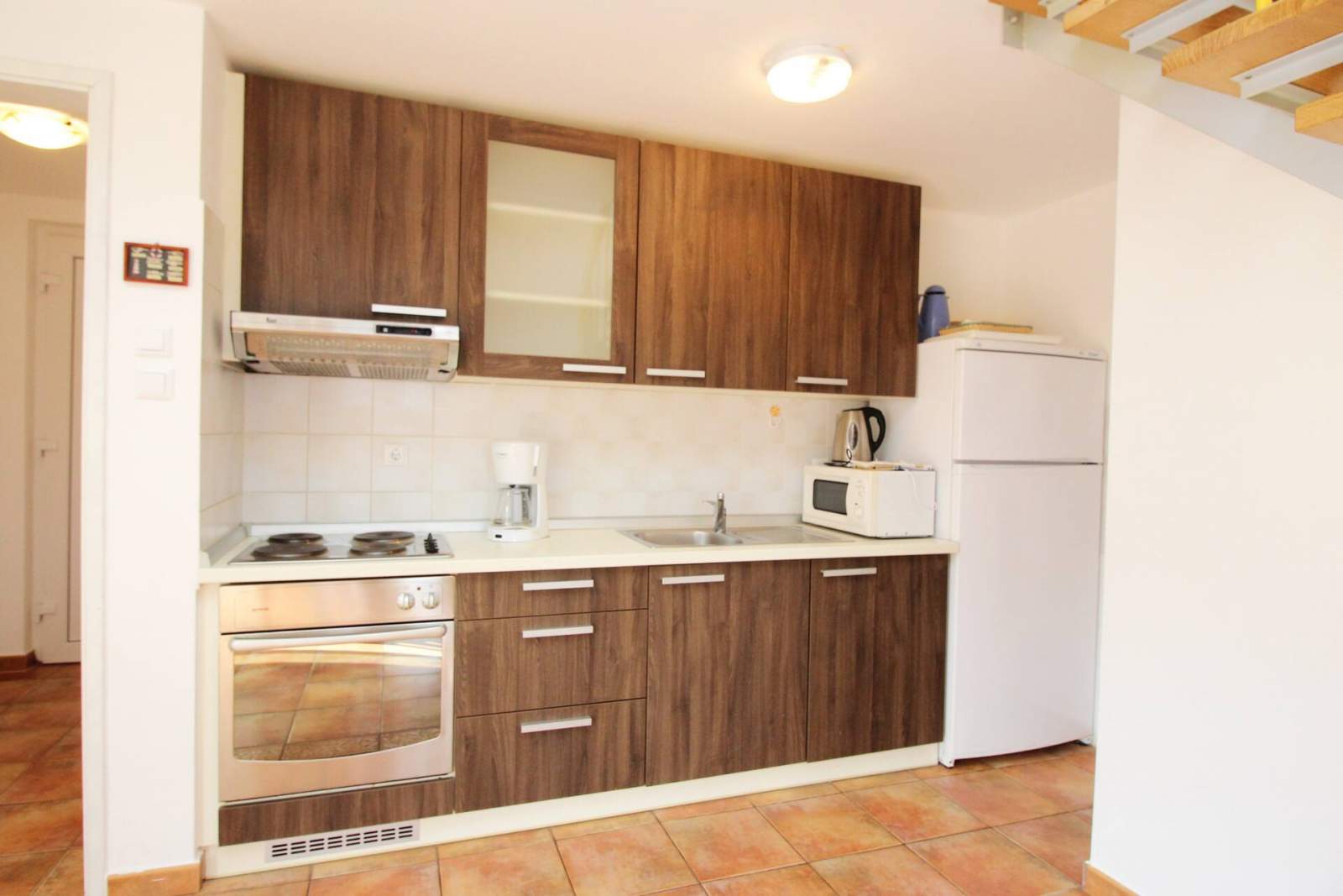 The apartment comes with a fully equipped kitchen, a living room with dining area, a bathroom (shower, toilet) and a balcony with sea view (10 m2).