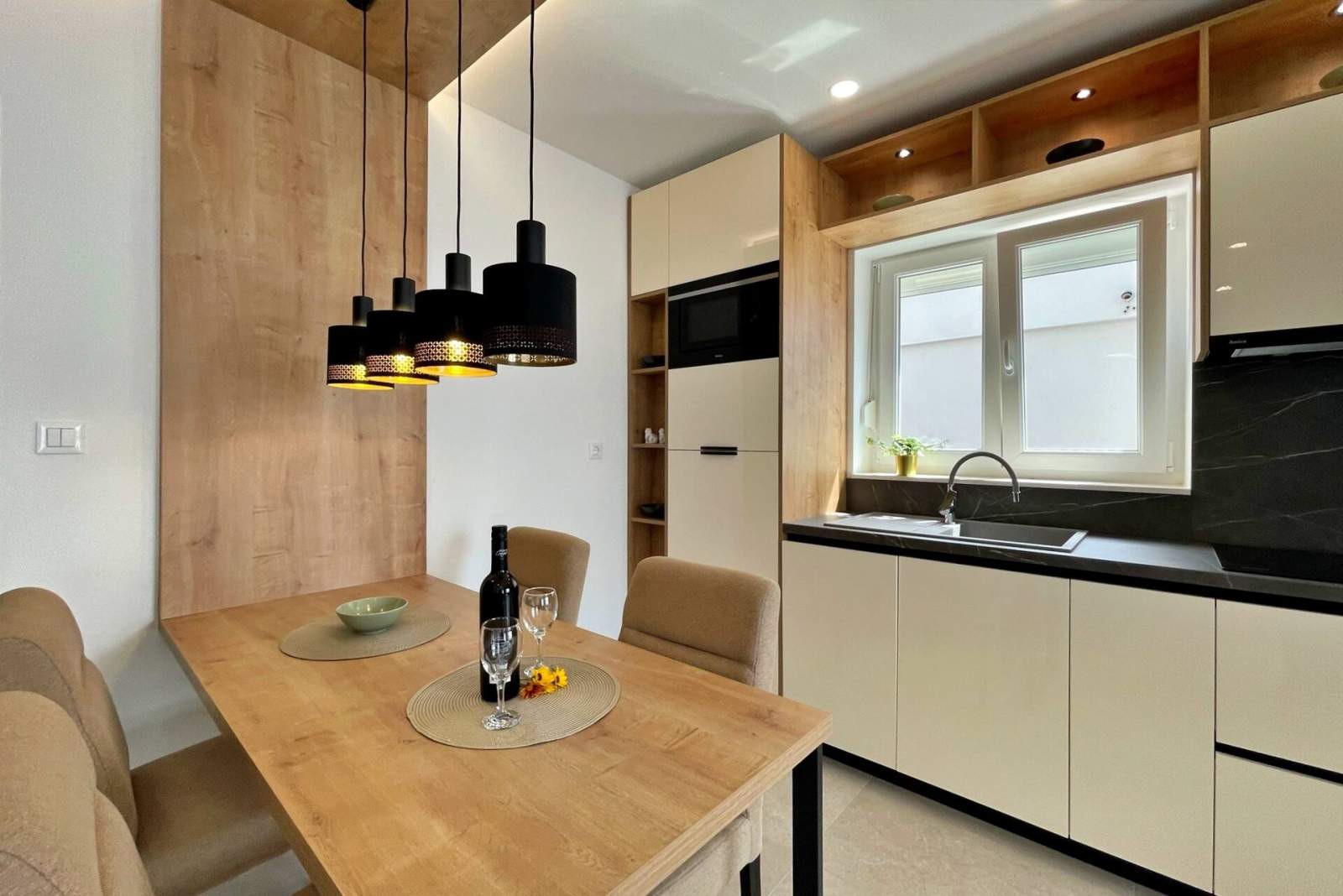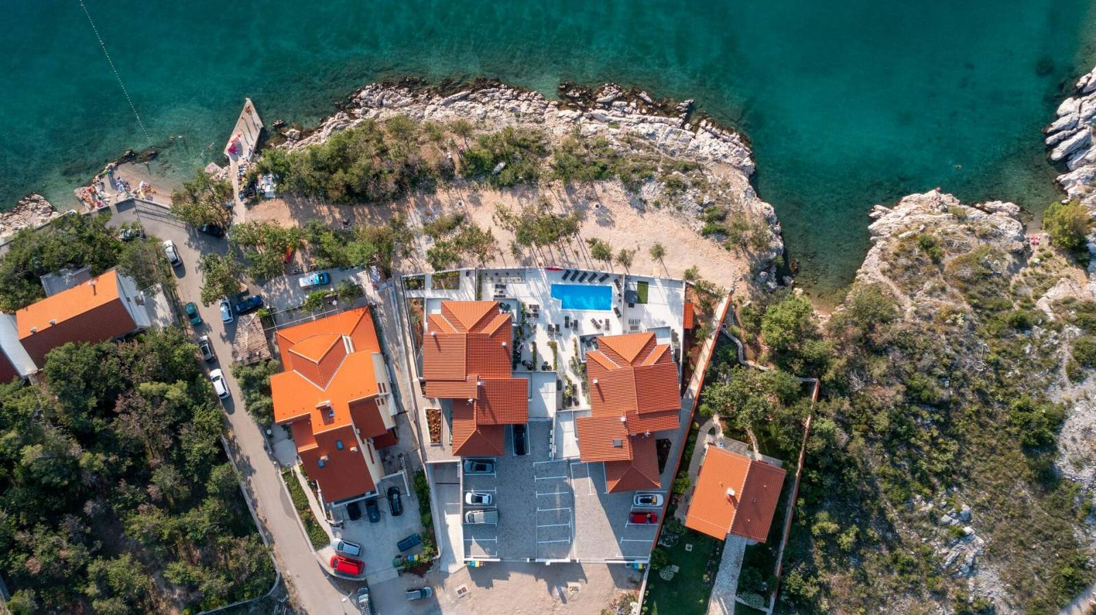 The location near the swimming facilities was perfect. The agency employee was very friendly, courteous, and helpful. She spoke good German. All technical devices such as Wi-Fi, TV, dishwasher, microwave, and parking lock worked perfectly. Very quiet location. Several restaurants nearby, easily accessible on foot. Good beds. Don't forget: bathing shoes are required for swimming on the rocky beaches. And a mosquito repellent. They were in our bedroom almost every night. The pool in the complex is also great. There are enough loungers and parasols available. And a shower with hot water. It's worth bringing diving goggles and a snorkel. Directly on the rocks below the apartments you can see several species of fish and large crabs.