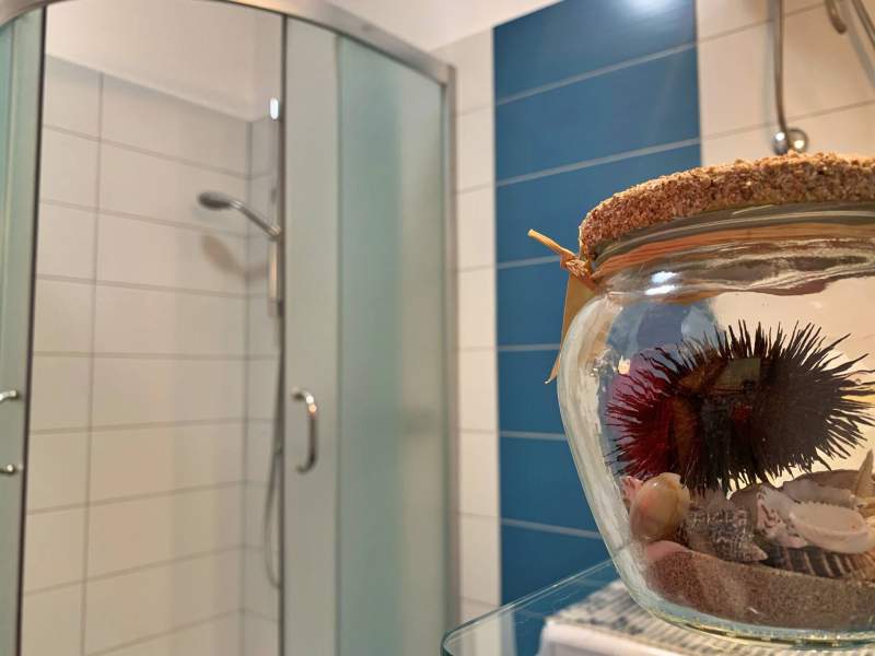 This apartment 450 m from the sea offers a cozy stay for up to 4 guests. The bedroom includes a queen-size and a single bed, while the living area features a pull-out sofa for one person, satellite/cable TV, Wi-Fi, and air conditioning. The kitchen is fully equipped with an electric stove, oven, fridge/freezer, microwave, coffee machine, kettle, dishwasher and toaster. The bathroom has a shower, toilet, and washing machine. Through the bedroom or kitchen you can access a private balcony (15 m2) with city and sea views. In front of the entrance there is also a shared terrace with a seating area. Free parking is available on the premises, and pets are welcome for an additional fee.
