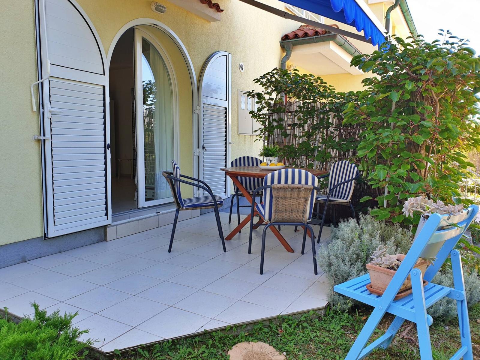 Enjoy your perfect holiday in this charming, ground-floor apartment designed for 2-4 guests. The cozy space includes a bedroom with a comfortable queen-size bed, plus a sofa bed for two in the living room. The open-plan kitchen and dining area come fully equipped with an electric stove, fridge, freezer, dishwasher, coffee machine, kettle, toaster, and microwave—everything you need for a delightful stay. There is a bathroom with a shower and toilet. Step out onto the 8 m2 terrace with a pergola for outdoor dining, or take advantage of the shared BBQ grill and outdoor shower.