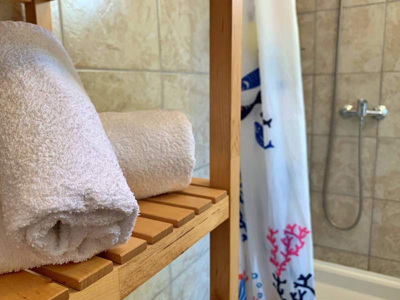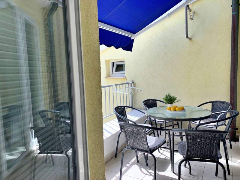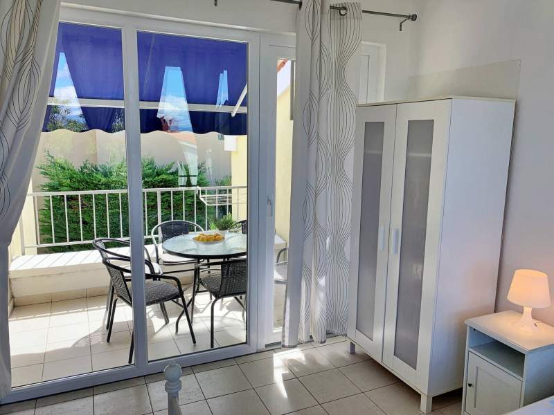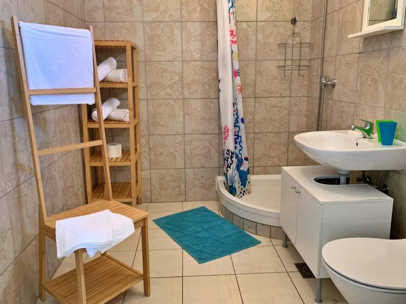 Step out onto the charming 5 m2 roofed balcony for outdoor dining, or take advantage of the shared BBQ grill and outdoor shower. The spacious bathroom comes with a shower and toilet. Wi-Fi, air conditioning, and a private parking space in front of the building are all included.