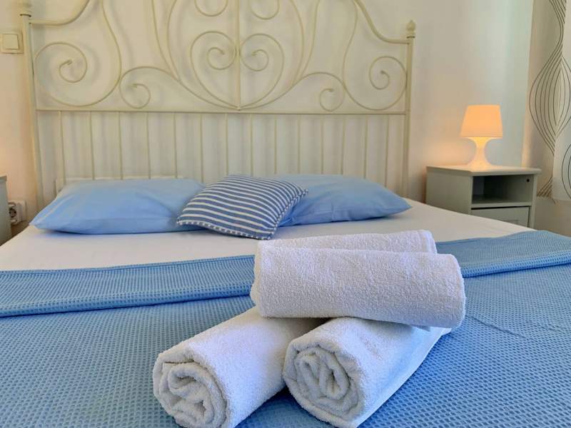 The sandy beach is just 90 meters away, and the town center is a short 450-meter walk. A baby cot and highchair are available upon request—reserve them early, as they are shared with other guests. Your friendly, English-speaking hosts live on-site and are always ready to assist, making sure your stay is as comfortable as possible.