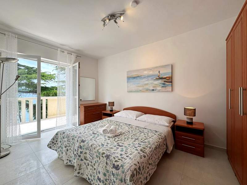 This inviting apartment is just 20 m from the sea and a sandy beach, offering the perfect seaside retreat. It is located on the first floor and features a bedroom with a queen-size bed, a living room with a pull-out sofa for two, a dining table, air conditioning and Wi-Fi. The kitchen is equipped with an electric/gas stove, oven, fridge with freezer, coffee machine, and kettle.