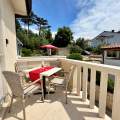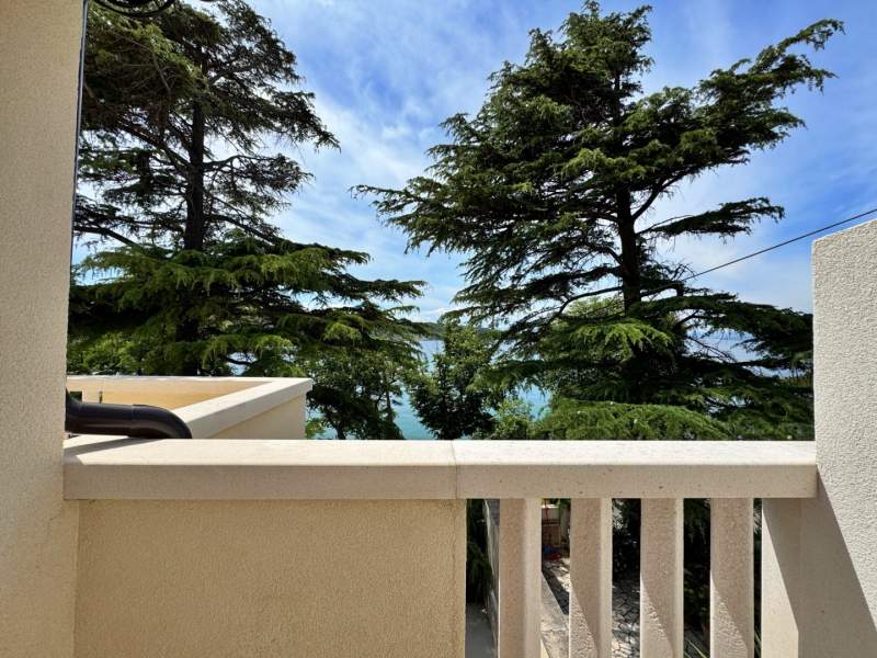 A 3 m2 balcony with sea view at the entrance to the apartmen and another one that is accessible through the living room. The bathroom includes a shower, toilet, and hairdryer. Guests can enjoy an outdoor shower, a shared BBQ area, and private parking conveniently located behind the house.
