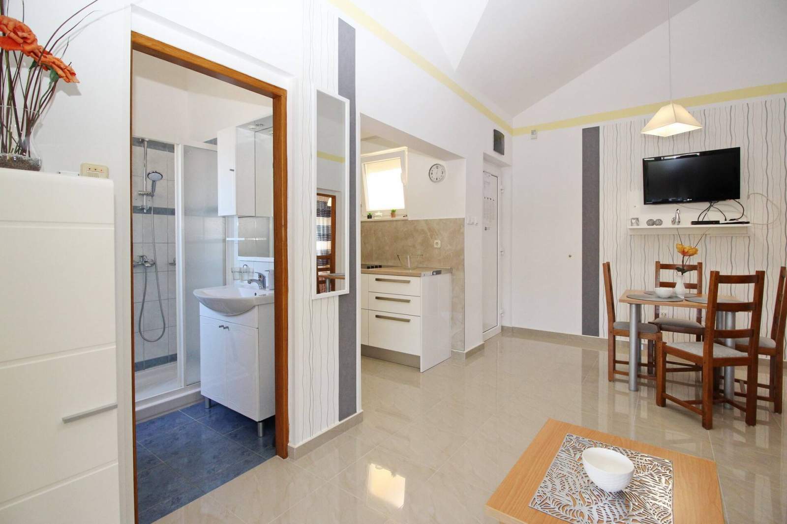 Additionally, there is a designated free parking spot for guests, making it easy to park a car. The apartment is just 50 meters from the sea, providing easy access to the beach, and the town center is 1.2 kilometers away, offering nearby shops, restaurants, and other services.