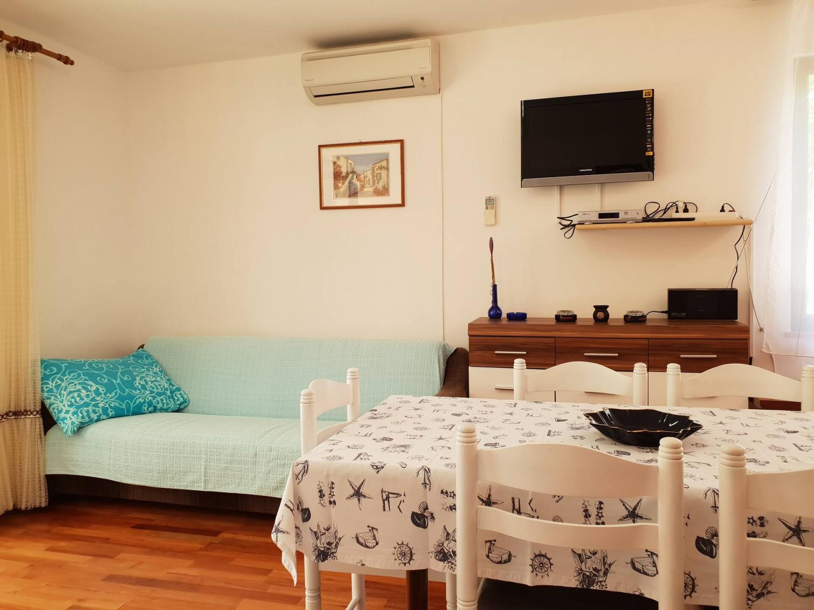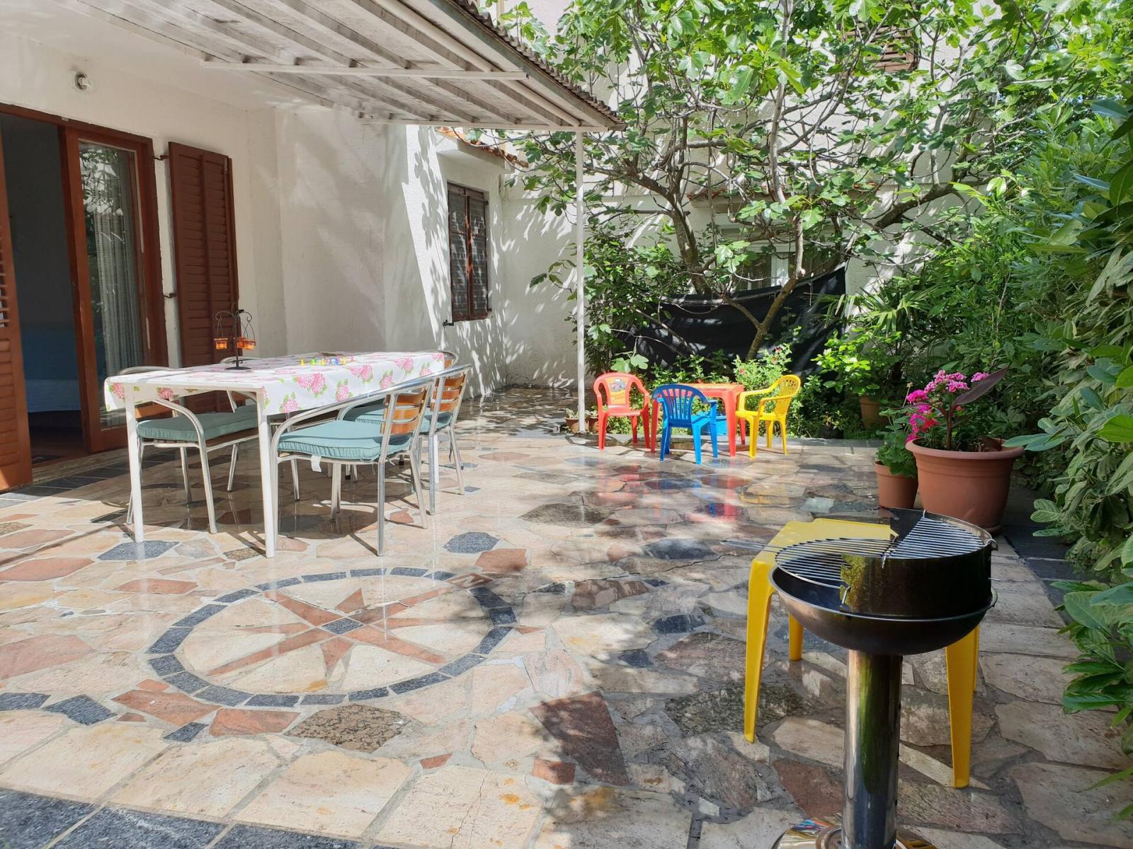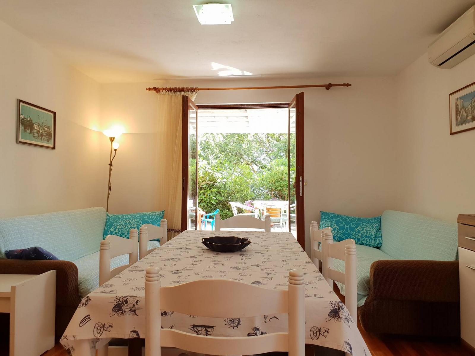 This comfortable ground-floor apartment, located 250 meters from the sea and 290 meters from a sandy beach, offers a relaxing garden view. The fully equipped kitchen includes an electric/gas stove, oven, fridge with freezer, coffee machine, kettle, dishwasher, mixer, and microwave. The living/dining room features a pull-out sofa, dining table, satellite TV, Wi-Fi, and air conditioning. The bedroom has a queen-size bed plus a single bed, and the bathroom includes a bathtub, toilet, and hairdryer. Outside, enjoy a 20 m2 partially roofed terrace with a dining table and access to a garden with BBQ. Private parking, bed linens, towels, and an iron are provided.