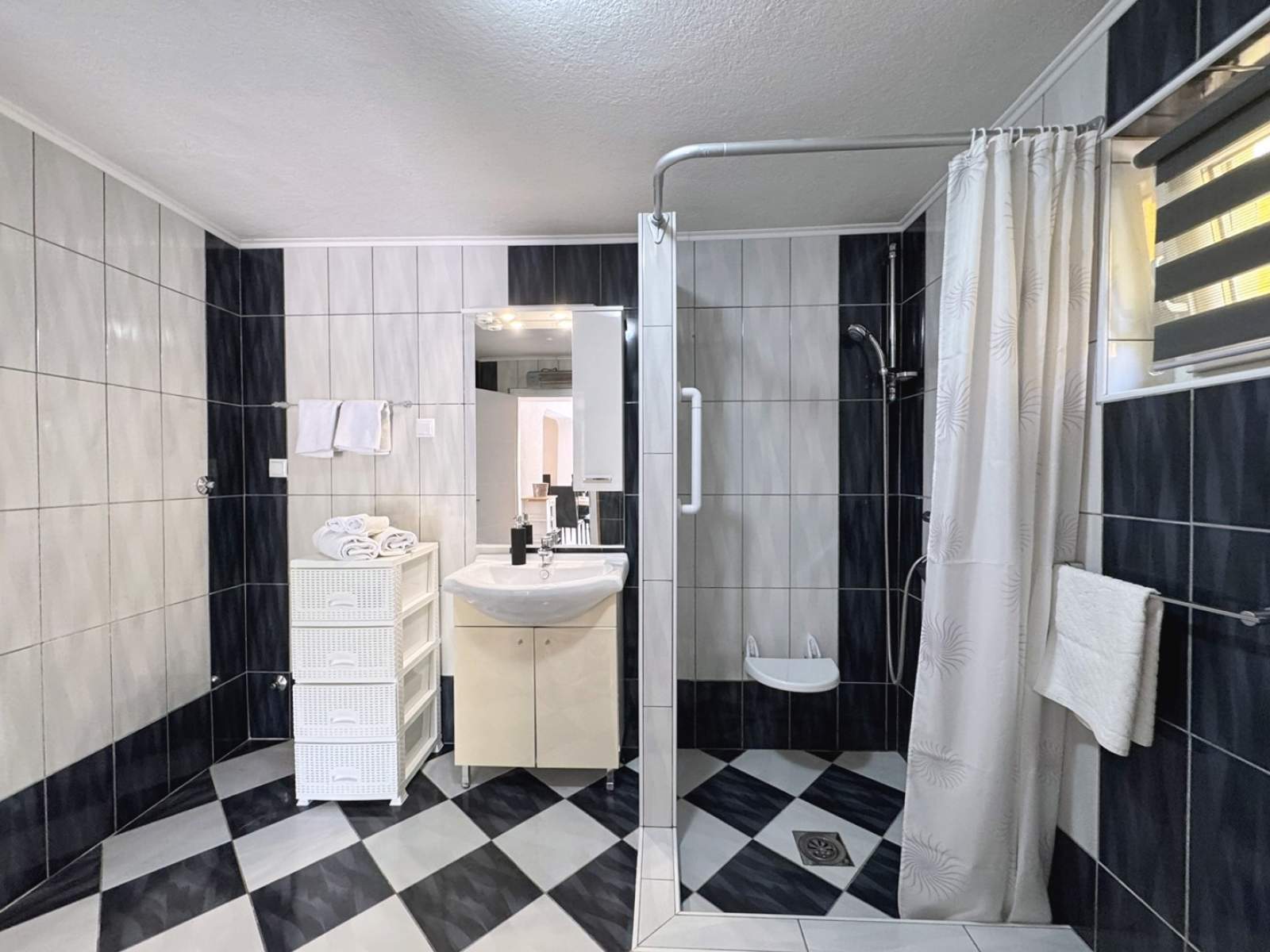 This modern ground-floor apartment is located 1.65 km from the sea and offers the perfect combination of comfort, practicality and a peaceful atmosphere. It features a fully equipped kitchen with a ceramic cooktop, oven, refrigerator with freezer, coffee machine, kettle and dining table. The living room includes a sofa (which can serve as an additional bed for one person), SAT TV, Wi-Fi and air conditioning. The comfortable bedroom has a double bed, while the bathroom is equipped with a shower, toilet and bidet.