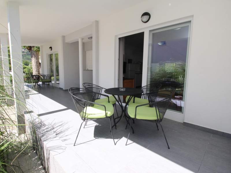 Each apartment has a well equipped kitchen with dining area, living room (additional bed on the couch for 2 persons) and a terrace on the ground floor.