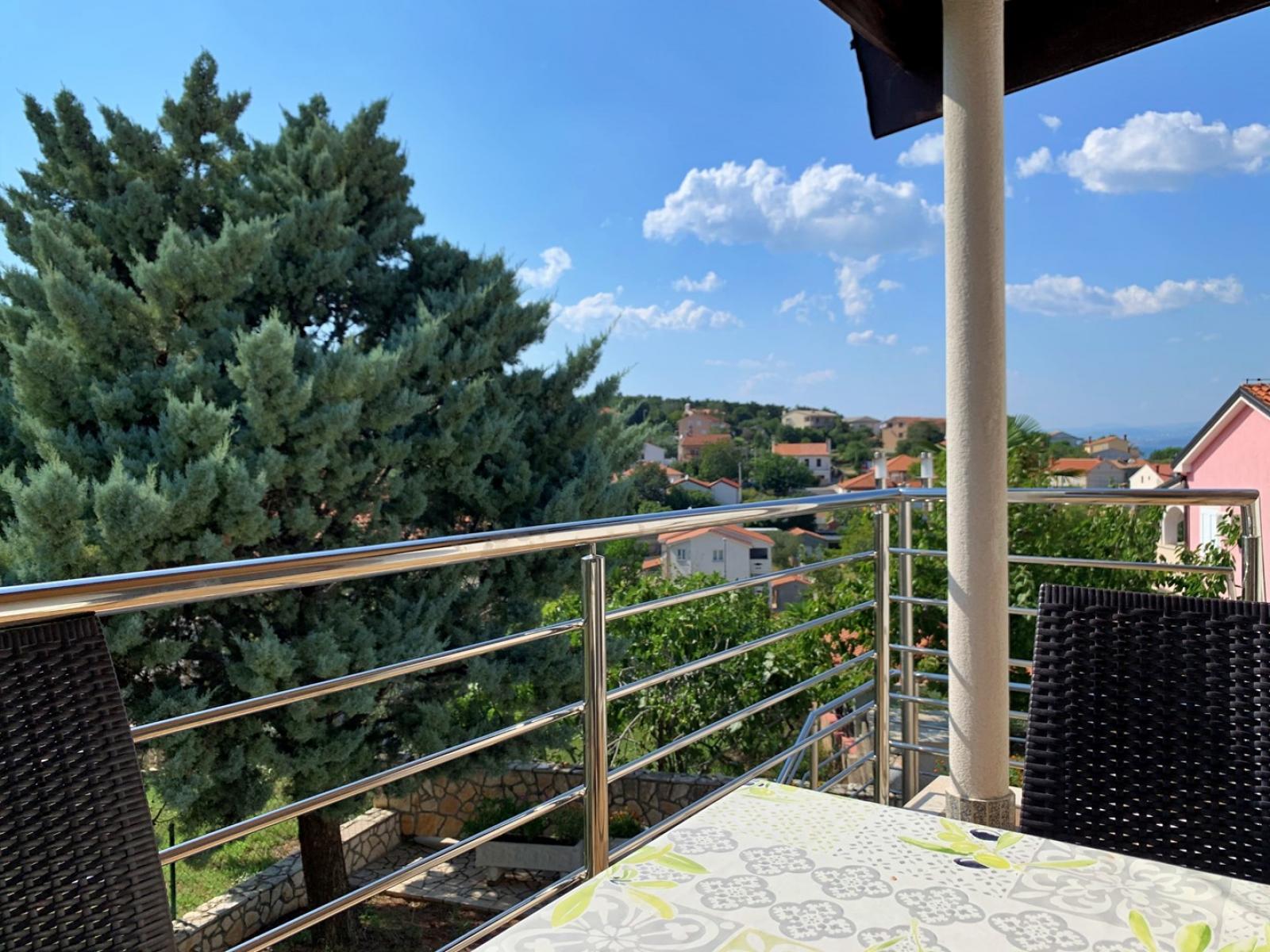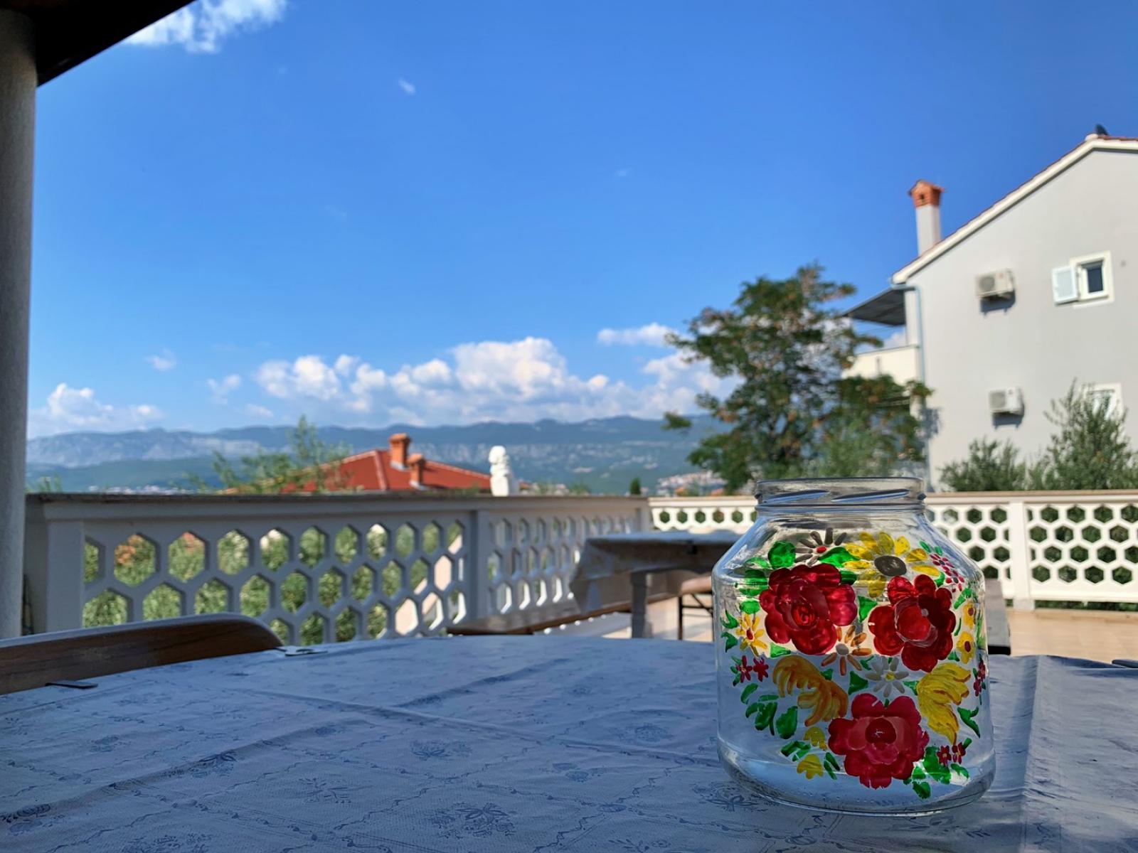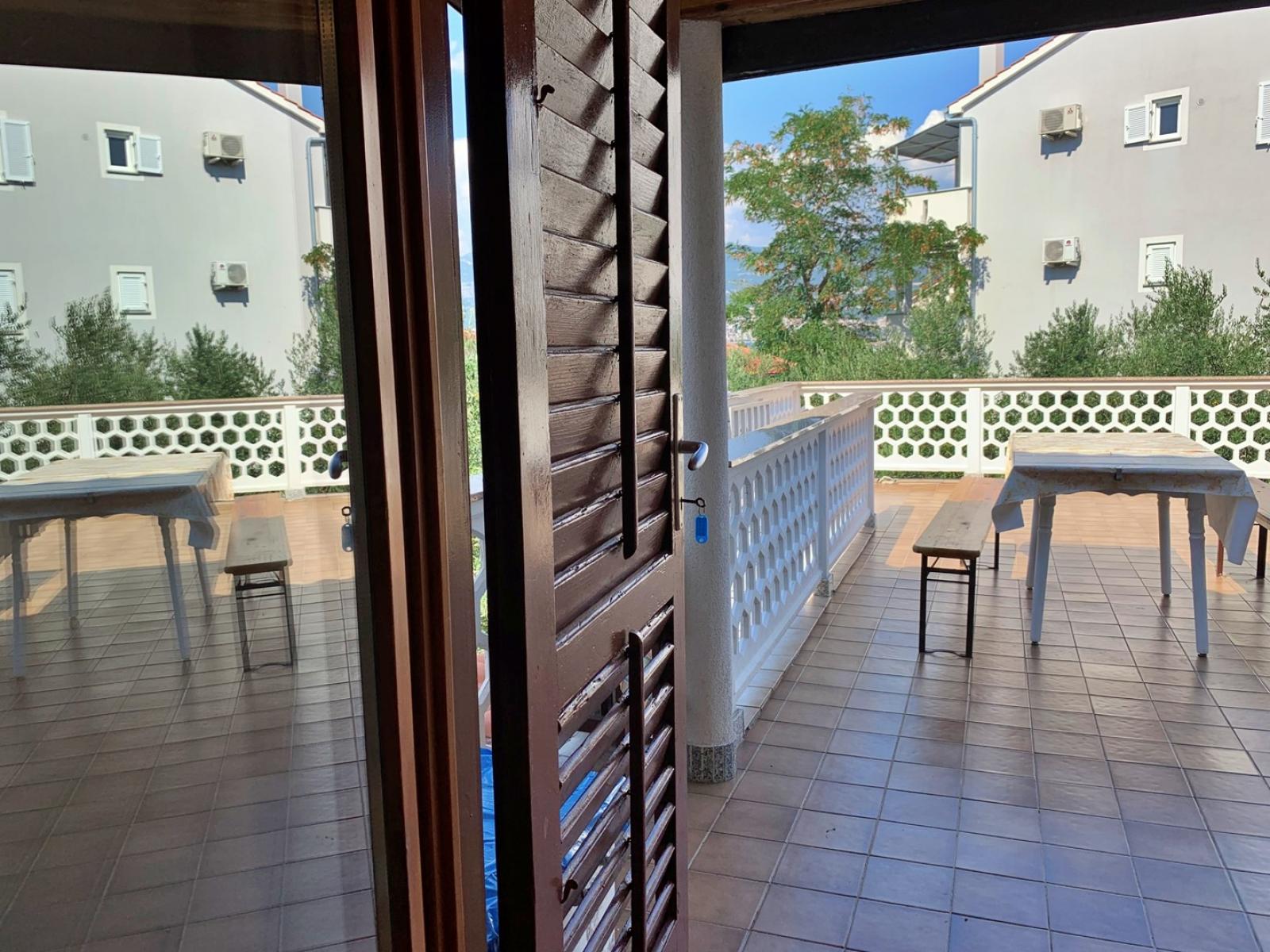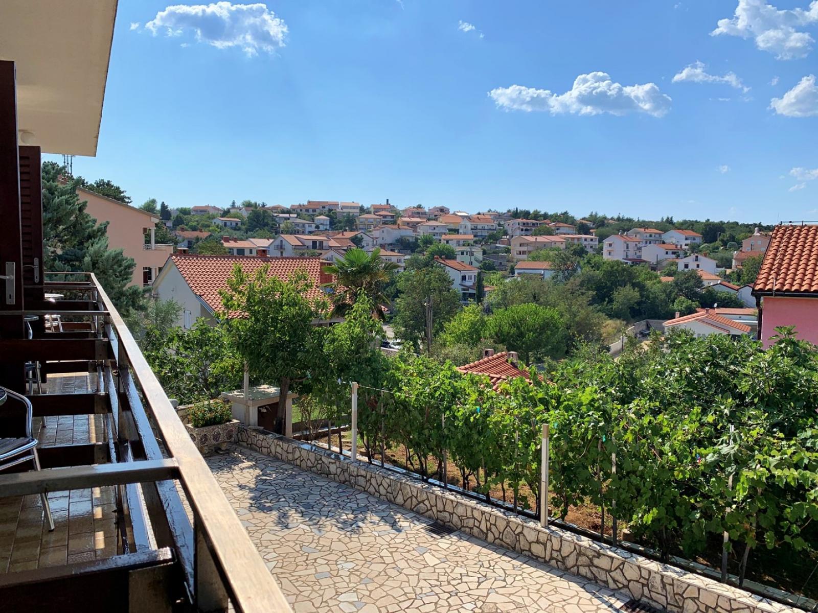 This spacious first-floor apartment is located just 160 m from the sea. It features a fully equipped kitchen with an electric/gas stove, oven, refrigerator with freezer, coffee machine, water kettle, and toaster. The kitchen is connected to the dining and living room, which includes a seating area and cable/satellite TV. Each of the four bedrooms has a queen bed and a washbasin. The two interconnected bathrooms feature two showers, three washbasins, and two toilets. A 10 m2 balcony with a sea view is accessible from each bedroom, while a large 30 m2 terrace also offers stunning sea views. Guests can enjoy a shared BBQ area on the ground floor and private carport parking. Free Wi-Fi is available throughout the apartment.
