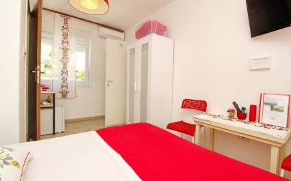 Apartment for 4-5 persons on the ground floor, surface around 60 m2, with 2 bedrooms (one with king size bed and other with 2 single beds).