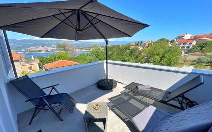 Discover the perfect getaway in our modern apartment just 130 meters from the sea! Enjoy free Wi-Fi, free parking, and an AC unit in every room. With two bedrooms, a fully equipped kitchen, and a modern bathroom with a washer/dryer, your comfort is guaranteed. Relax on the balcony, the terrace with a stunning view or dine in the cozy loggia. This serene haven features everything you need for a memorable stay. Book now for an unforgettable escape!