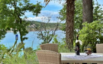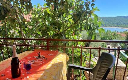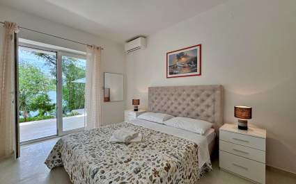 Just 20 m from the sea and sandy beach, this first-floor apartment features a bedroom with a queen-size bed, a living room with a pull-out sofa for two, a dining table, air conditioning, and Wi-Fi. The kitchen includes an electric/gas stove, oven, fridge, coffee machine, and kettle. A 12 m2 balcony with an awning offers stunning sea views. The bathroom has a shower, toilet, and hairdryer. Guests enjoy an outdoor shower, shared BBQ area, and private parking behind the house.