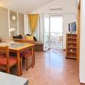 Apartman uključuje potpuno opremljenu kuhinju i dnevni boravak s blagovaonicom, kupaonicu (tuš, WC) i balkon s pogledom na more (5 m2).
