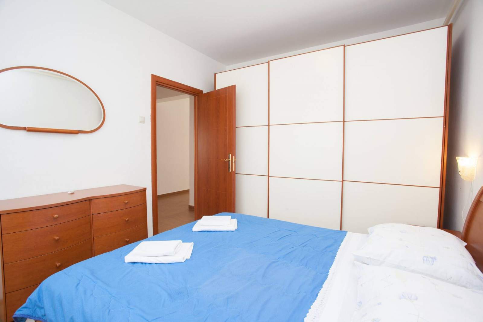 Sadrži dvije spavaće sobe (svaka s bračnim krevetom).