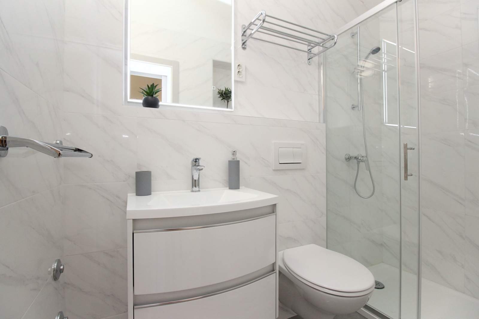 Apartman uključuje potpuno opremljenu kuhinju s blagovaonicom, kupaonicu (tuš, WC) te balkon (10m2).
