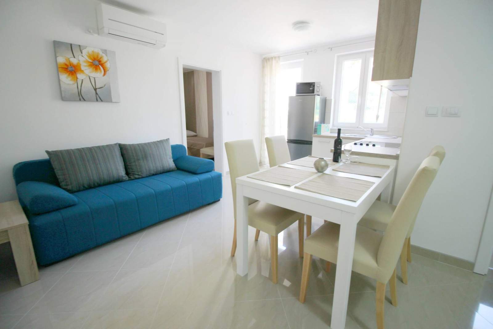 Apartman se nalazi u prizemlju i namijenjen je za maksimalno 4-5 osoba, a ukupna površina je oko 55 m2.
