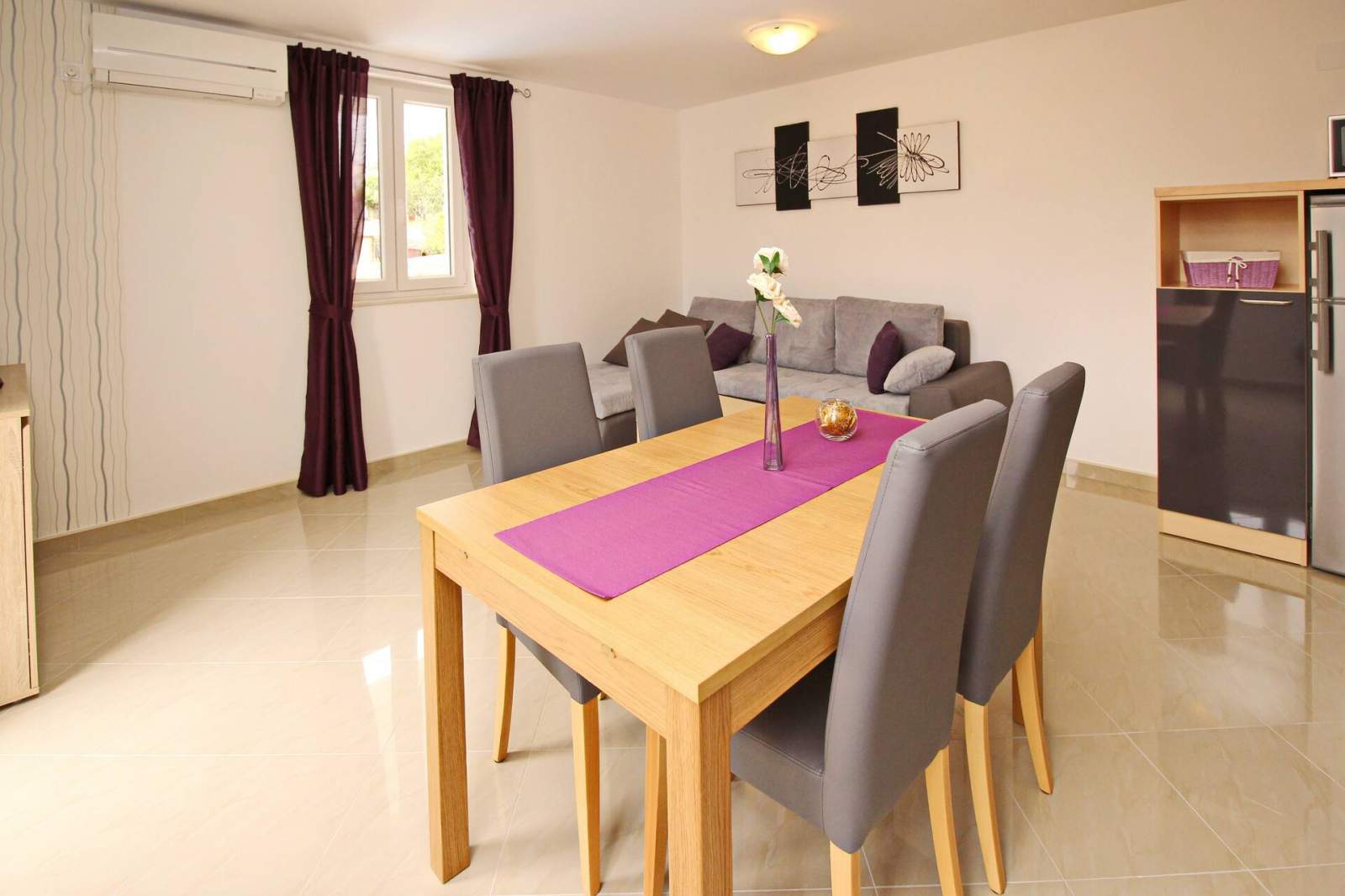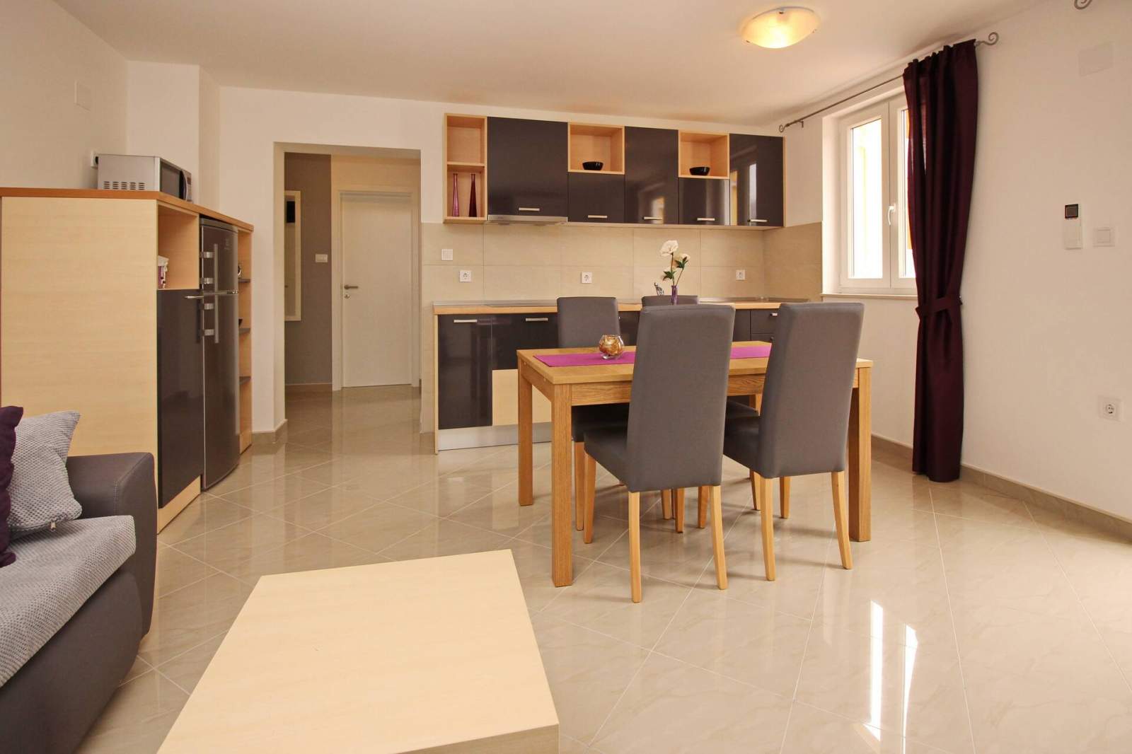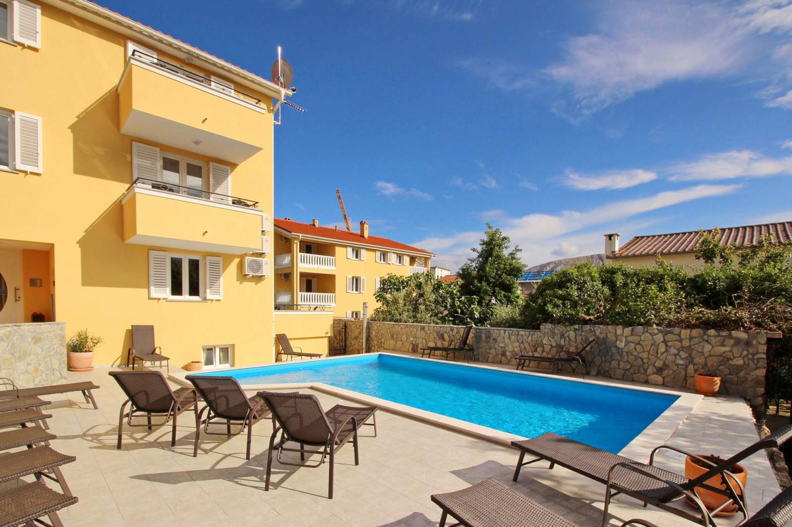 Ovaj moderan, prostran apartman smješten je u kući sa zajedničkim bazenom, oko 300 m od glavne plaže i 200 m od centra Baške.