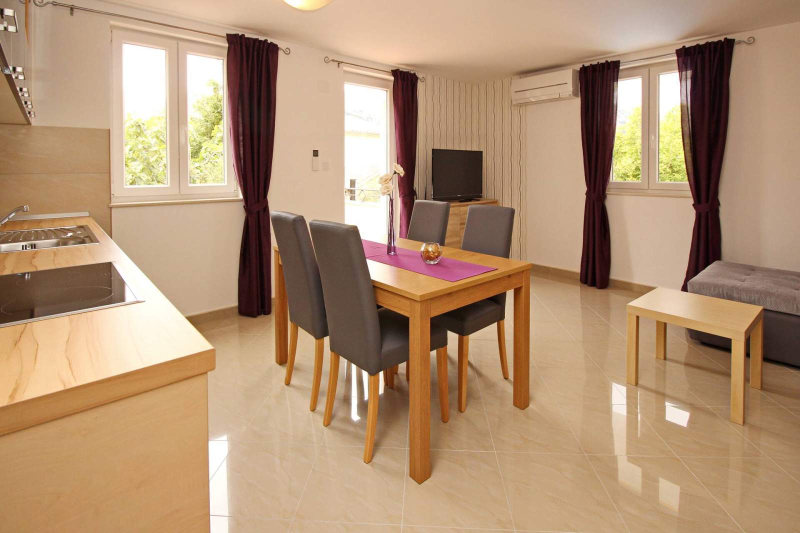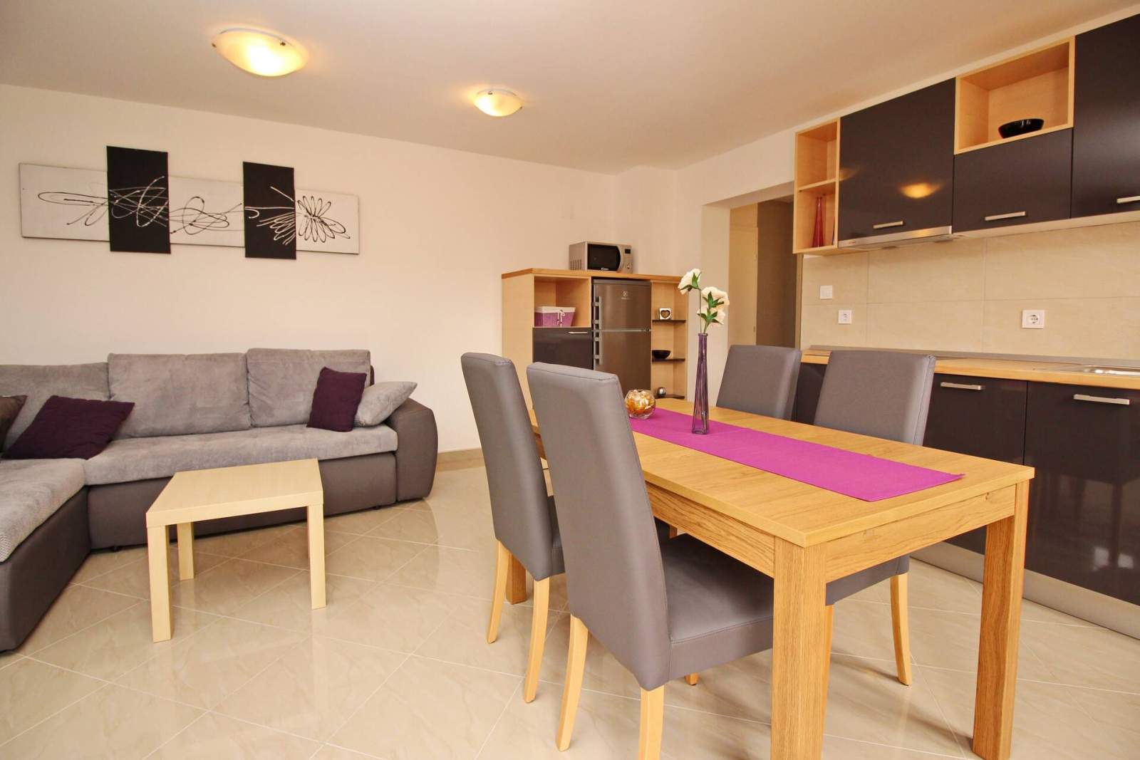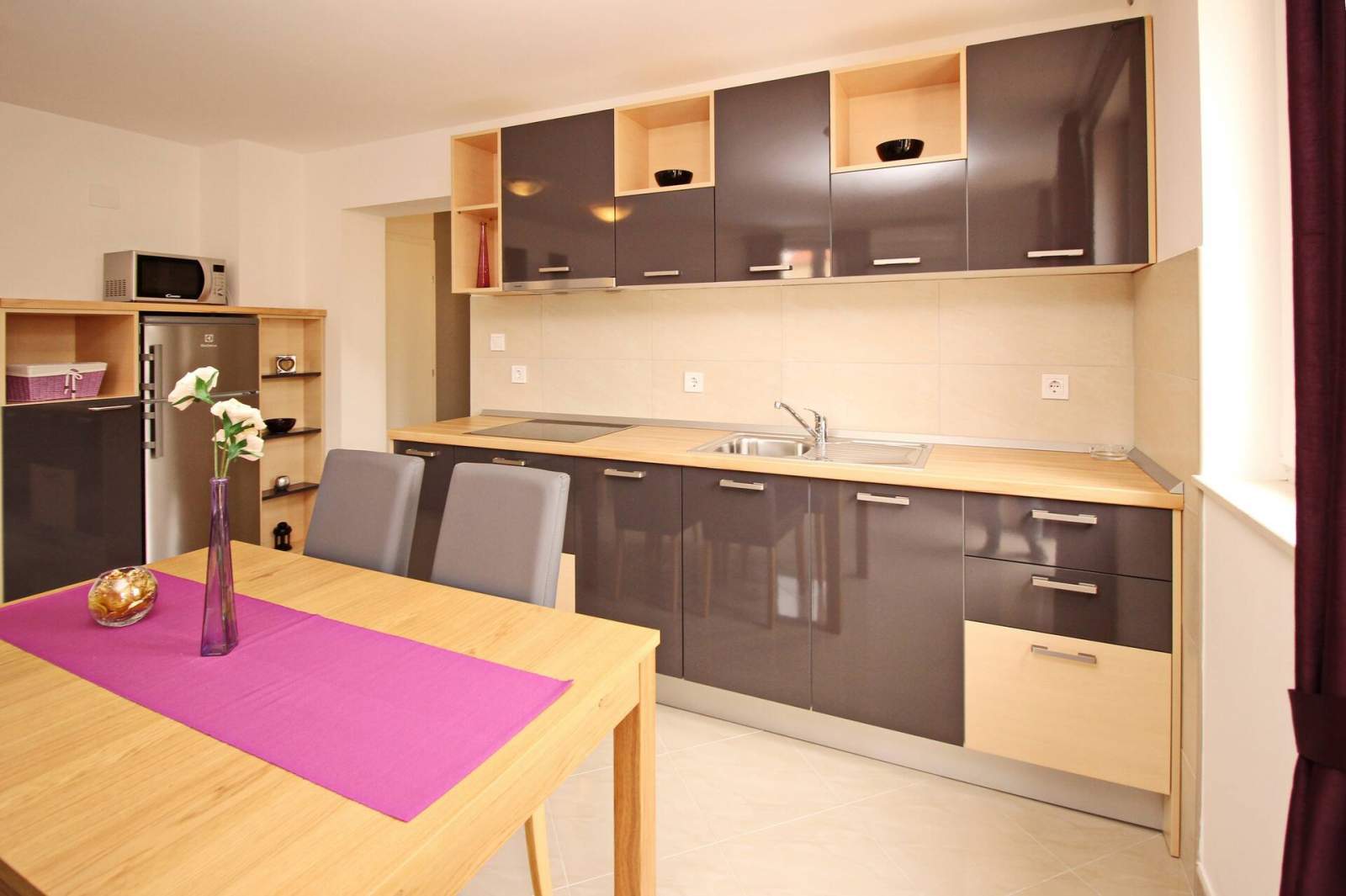 Ovaj moderan, prostran apartman smješten je u kući sa zajedničkim bazenom, oko 300 m od glavne plaže i 200 m od centra Baške.