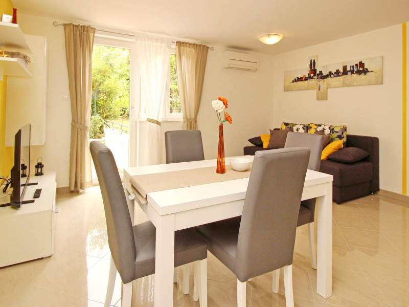 This modern, spacious apartment is located in a house with shared pool, about 300 m from the main beach of Baska and 200 m from the city center.