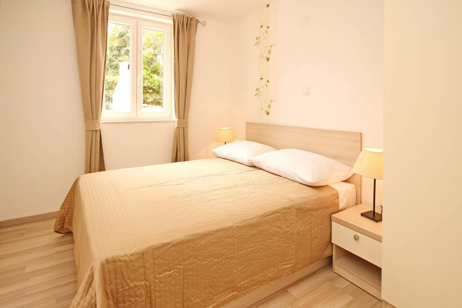 This modern, spacious apartment is located in a house with shared pool, about 300 m from the main beach of Baska and 200 m from the city center.