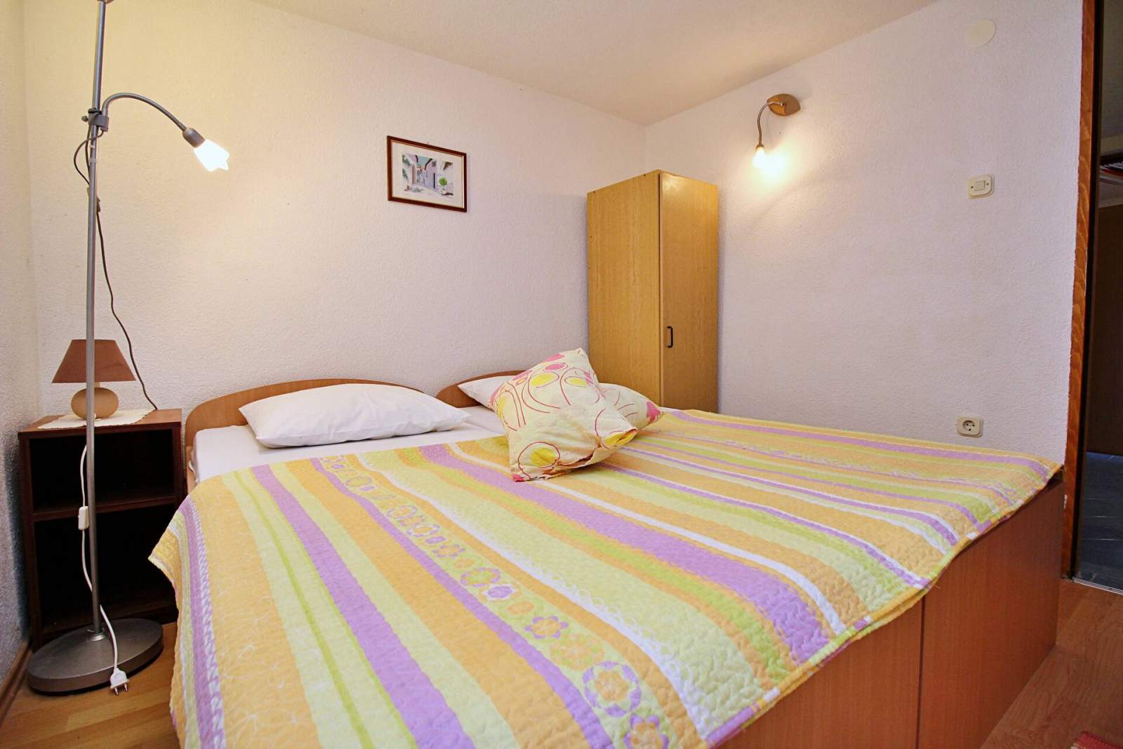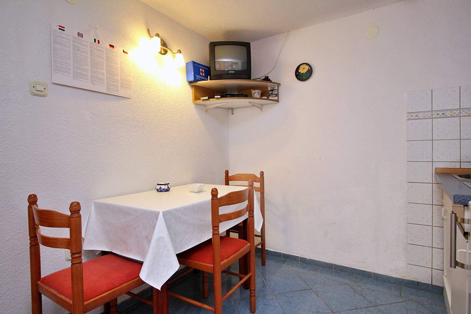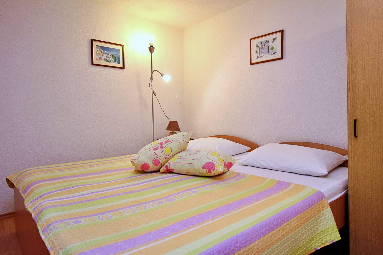 Ovaj apartman u suterenu, udaljen samo 240 metara od mora, može biti Vaše mjesto za ugodan boravak. Ima spavaću sobu s bračnim krevetom i dnevnim boravkom sa stolom za blagovanje, čajnom kuhinjom i kabelskom TV s hrvatskim programima. Privatna terasa na ulazu ima blagovaonicu s tendom i gleda na mirnu ulicu. Čajna kuhinja sadrži električni štednjak, mini hladnjak, aparat za kavu i kuhalo za vodu, dok je kupaonica opremljena tušem i WC-om. U dvorištu je dostupan besplatan parking i zajednički roštilj. Pješčana plaža udaljena je 240 metara. Iako nema klima uređaj, u spavaćoj sobi nalazi se ventilator.