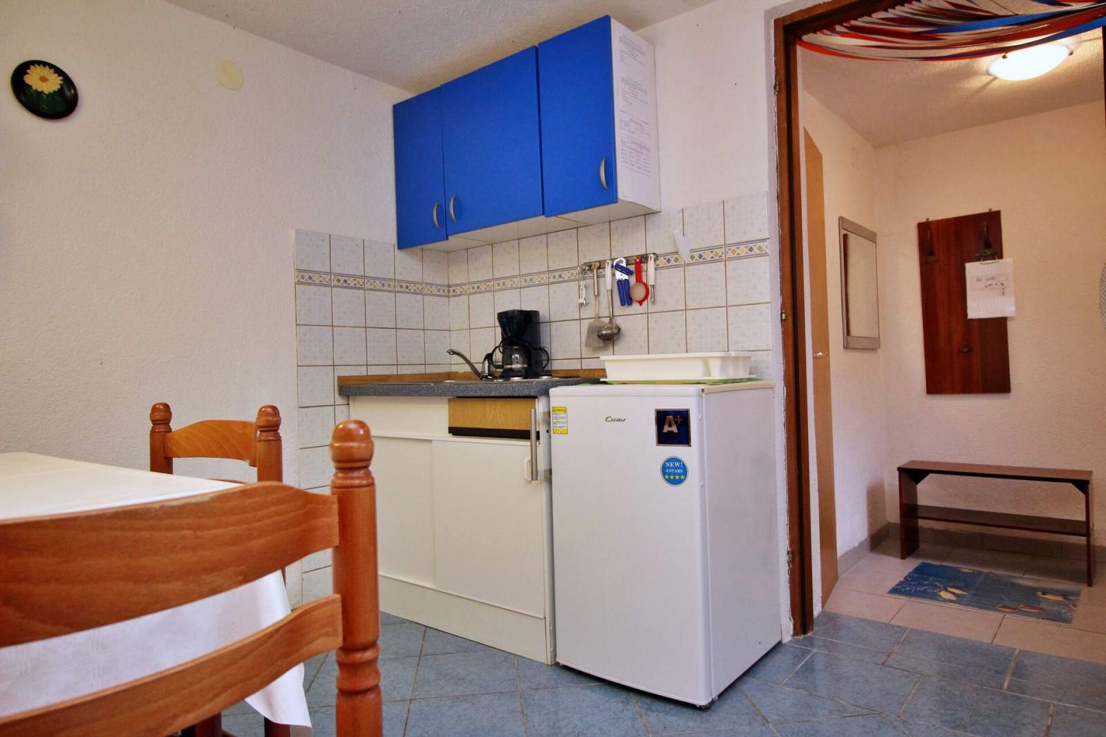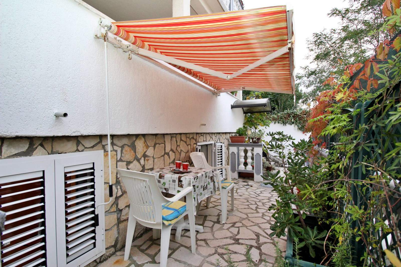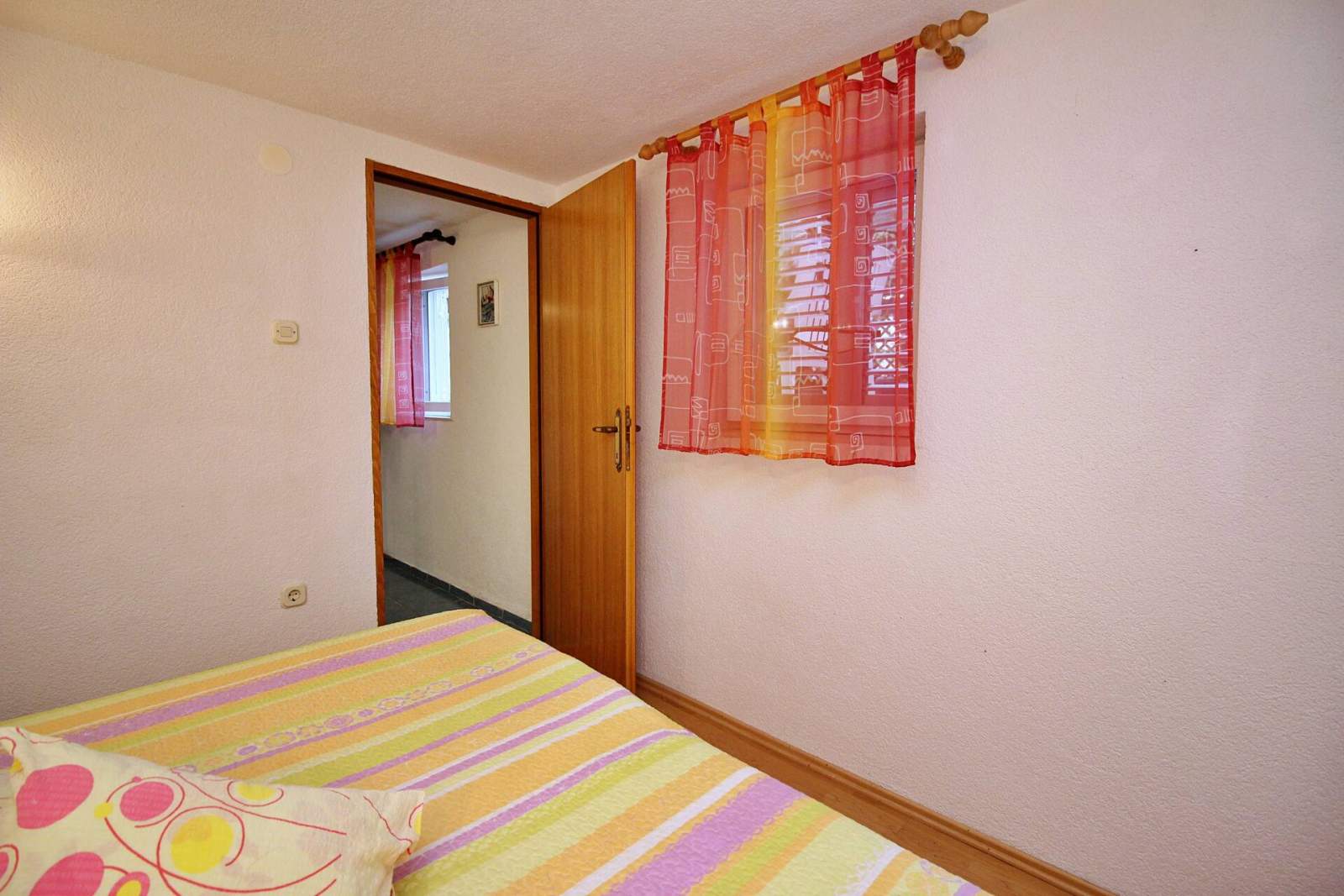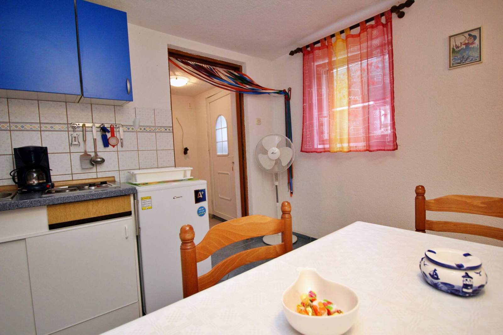 Ovaj apartman u suterenu, udaljen samo 240 metara od mora, može biti Vaše mjesto za ugodan boravak. Ima spavaću sobu s bračnim krevetom i dnevnim boravkom sa stolom za blagovanje, čajnom kuhinjom i kabelskom TV s hrvatskim programima. Privatna terasa na ulazu ima blagovaonicu s tendom i gleda na mirnu ulicu. Čajna kuhinja sadrži električni štednjak, mini hladnjak, aparat za kavu i kuhalo za vodu, dok je kupaonica opremljena tušem i WC-om. U dvorištu je dostupan besplatan parking i zajednički roštilj. Pješčana plaža udaljena je 240 metara. Iako nema klima uređaj, u spavaćoj sobi nalazi se ventilator.