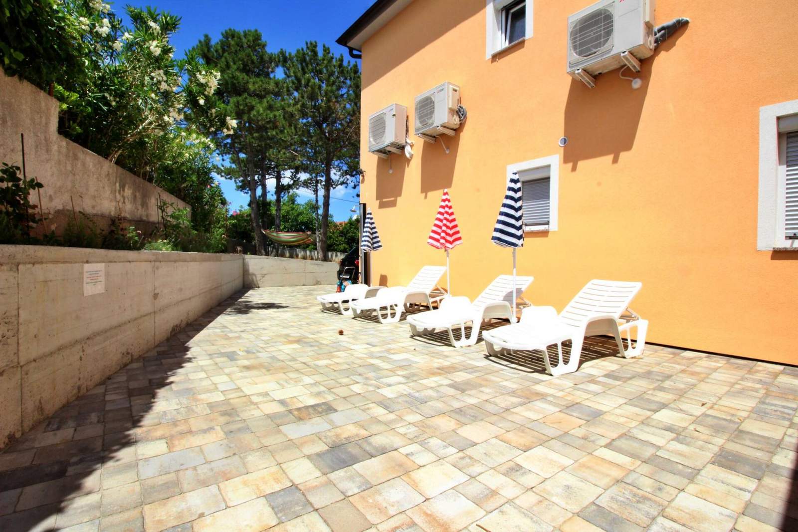 Gostima je na raspolaganju besplatan Wi-Fi, klima uređaj i parkirna mjesta u dvorištu. Zajednički vanjski prostor od 90 m2 uključuje prostor za roštilj i vanjski tuš, idealan za opuštanje nakon dana na plaži. Sa svojom odličnom lokacijom i dobro opremljenim sadržajima, ovaj apartman pruža sve što je potrebno za opuštajući i ugodan boravak.