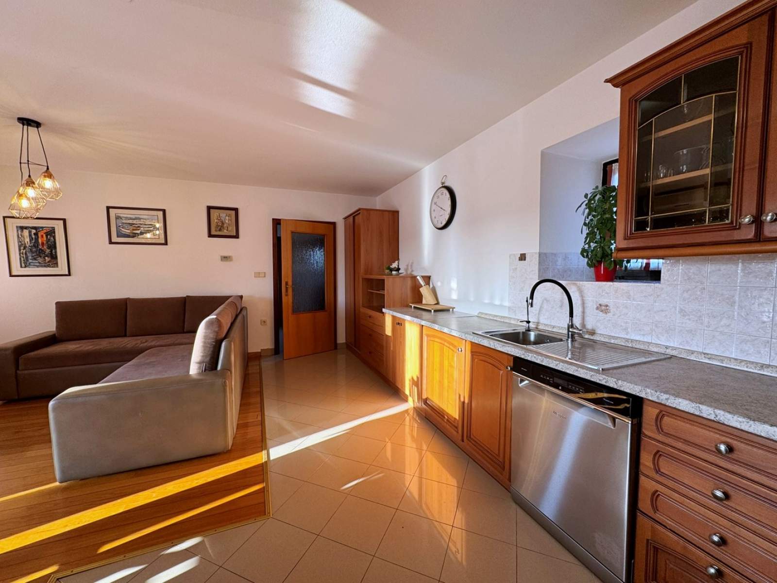 Smještaj za odmor od 80 m2 na 2. katu udaljen je 450 m od mora i idealan je smještaj za obitelji. Apartman ima potpuno opremljenu kuhinju sa staklokeramičkom pločom za kuhanje, pećnicom, hladnjakom sa zamrzivačem, aparatom za kavu, kuhalom za vodu, i stolom za blagovanje. Dnevni boravak nudi kauč, WiFi i klima uređaj. U hodniku se nalazi drugi klima uređaj.