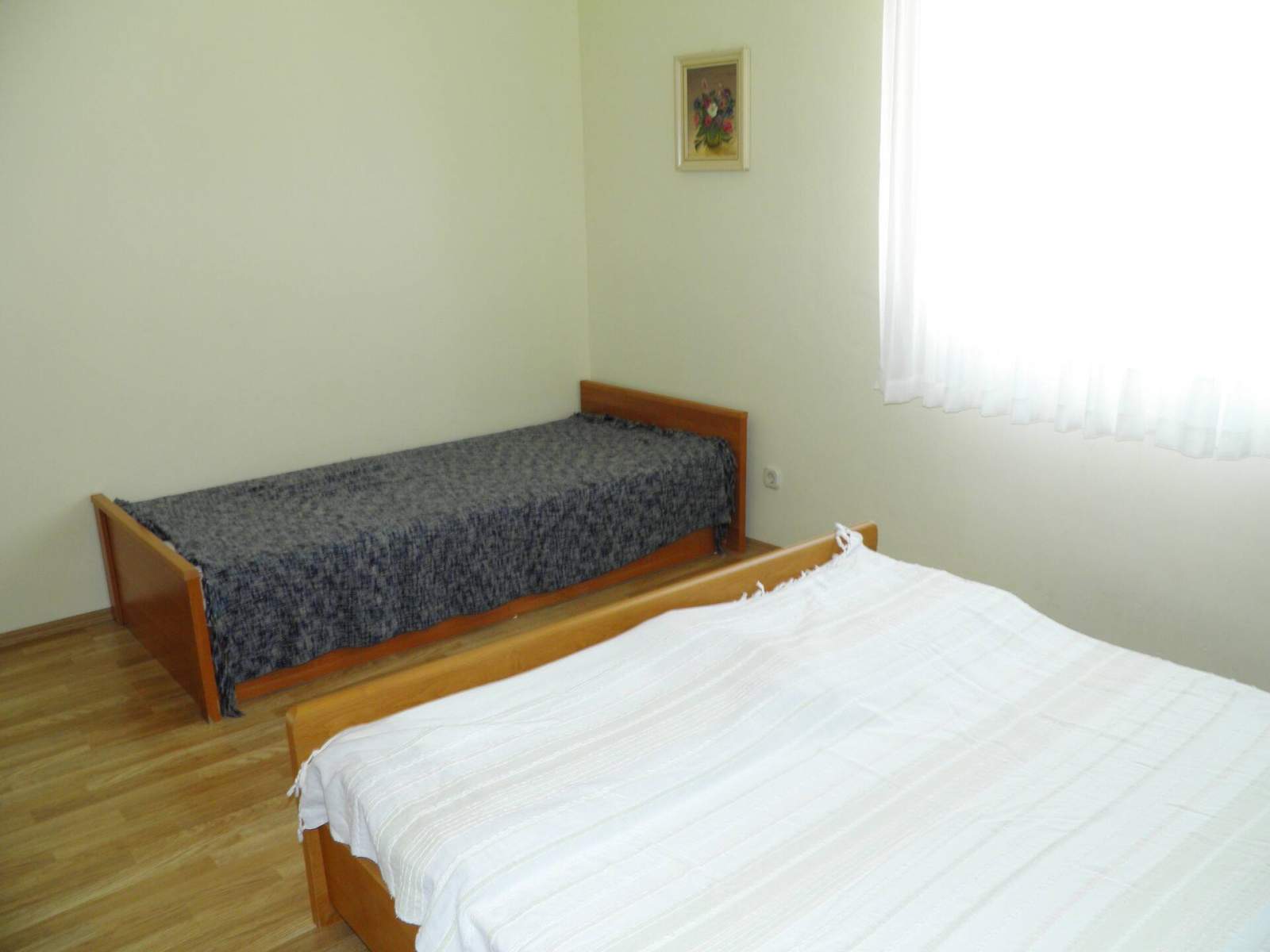 Sastoji se od 1 spavaće sobe (s bračnim krevetom i krevetom za jednu osobu).