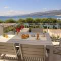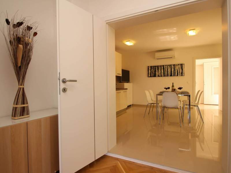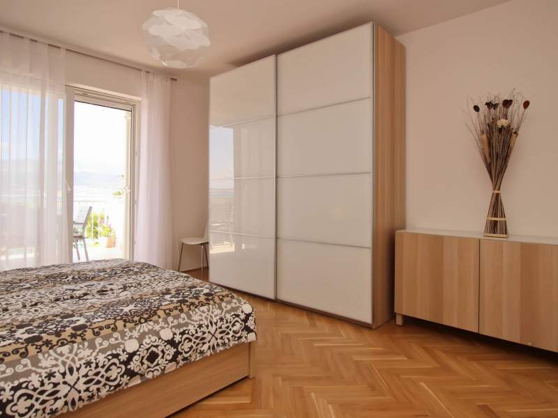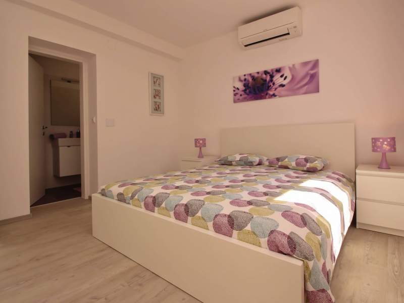 Ovaj moderan apartman na prvom katu udaljen je samo 10 metara od mora i 60 metara od plaže. Apartman ima prostranu terasu od 25 m2 ispred ulaza i terasu od 15 m2 sa pogledom na more i stolom za blagovanje. Dnevni boravak sadrži blagovaonski stol, satelitsku TV, klima uređaj i kauč na razvlačenje za jednu osobu. Potpuno opremljena kuhinja uključuje štednjak s električnim i plinskim plamenicima, hladnjak/zamrzivač, aparat za kavu, kuhalo za vodu, mikrovalnu pećnicu i perilicu posuđa. Jedna spavaća soba ima bračni krevet, sef i vlastitu kupaonicu s WC-om i tušem, dok druga spavaća soba ima bračni krevet, satelitsku TV i klima uređaj za dodatnu udobnost. Druga kupaonica s tušem i sušilom za kosu upotpunjuje interijer. Dodatne pogodnosti uključuju zajednički roštilj, vanjski tuš, praonicu s perilicom rublja (dijeli se s ostalim gostima), glačalo, dječju stolicu, ležaljke, besplatno parkiralište te osiguranu posteljinu i ručnike. S obzirom da je centar mjesta udaljen samo 200 m, imat ćete jednostavan pristup popularnim turističkim atrakcijama.