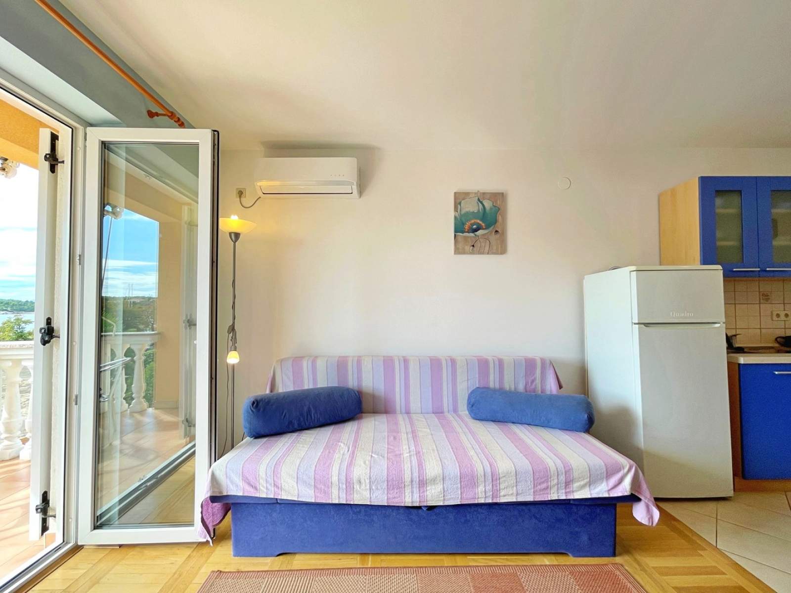 Ovaj ugodan jednosobni apartman nalazi se samo 10 metara od plaže i nudi privatni balkon (6 m2) s prekrasnim pogledom na more, plažu i mjesto. Gostima je na raspolaganju roštilj, besplatan Wi-Fi, privatno parkirno mjesto i zajednički vanjski tuš. Klima uređaj dostupan je uz nadoplatu od 7,00 EUR po noćenju. U spavaćoj sobi je udoban bračni krevet, a u dnevnom boravku se nalazi kauč na razvlačenje za još jednu osobu. Kuhinja, blagovaonica i dnevni boravak uključuju električni/plinski štednjak s 4 plamenika, hladnjak sa zamrzivačem, pećnicu, mikrovalnu pećnicu, aparat za kavu, kuhalo za vodu i toster. Dnevni dio također ima kauč na razvlačenje, SAT TV i direktan izlaz na natkriveni balkon. Svi prozori su opremljeni mrežama protiv komaraca za dodatnu udobnost. Dječji krevetić ili hranilica dostupni su na zahtjev prije dolaska (ovisno o raspoloživosti).