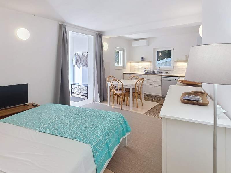 Ovaj studio apartman za maksimalno 2 osobe, ukupne površine 30 m2, smješten je u prizemlju.