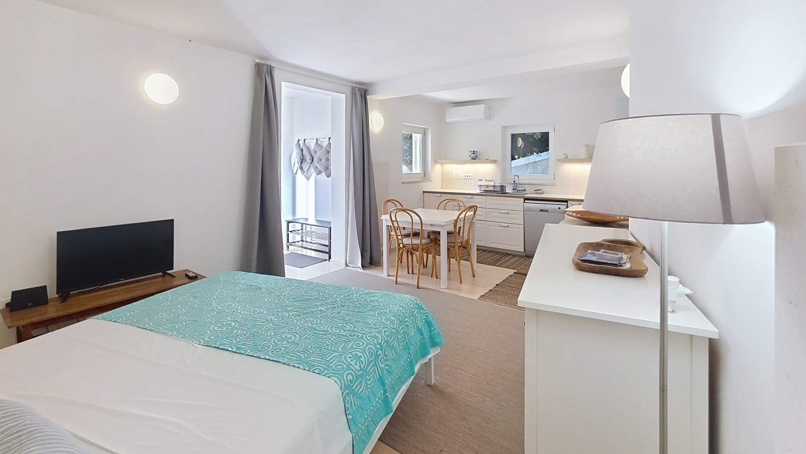 Ovaj studio apartman za maksimalno 2 osobe, ukupne površine 30 m2, smješten je u prizemlju.