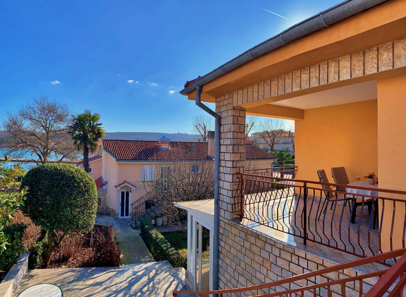 Uživajte u opuštajućem boravku u ovom lijepo uređenom apartmanu na prvom katu, samo 70 metara od mora, smještenom u centru mjesta i u blizini brojnih plaža i restorana. Apartman ima dobro opremljenu kuhinju s električnim štednjakom, pećnicom, hladnjakom sa zamrzivačem, aparatom za kavu, kuhalom za vodu i tosterom te blagovaonski stol. Dnevni boravak ima satelitsku/kabelsku TV, klima uređaj i kauč na razvlačenje za jednu osobu. Spavaća soba ima udoban bračni krevet, ormar, te prostrani balkon od 13 m2 s pogledom na more. Kupaonica uključuje tuš, WC i perilicu rublja. Opustite se na terasi od 35 m2 ili u vanjskom blagovaonskom prostoru s pogledom na more. Prostor za roštiljanje nalazi se u prizemlju. Posteljina, ručnici, Wi-Fi i parkirno mjesto su uključeni u cijenu.